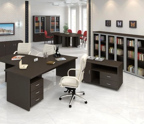 Остановился на этом варианте кабинета руководителя, долго думал какой взять. Наконец то дождались доставку, она была действительно долгой, но ничего, быстро собрали мебель зато. Прежде всего понравилось как мебель гармонирует с интерьером, как будто всю жизнь здесь стояла. Определенно это плюс, к качеству вопросов нет, отечественное производство на высшем уровне, спасибо!