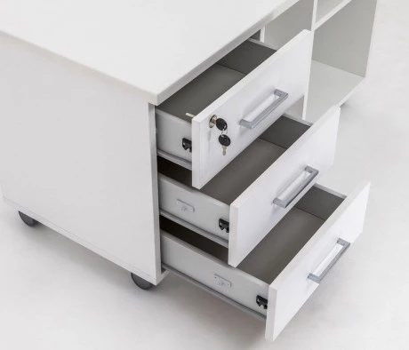 Комплект мебели для персонала Sentida выполнен в очень красивом современном стиле. Также тумба и стол очень эргономичные и функциональные. Вся фурнитура качественная, сборщики хорошо всё собрали, крепко прикрутили. Всем довольна, спасибо Вам!