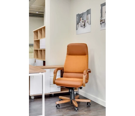 Кресло действительно поддерживает спину, на нем не устаешь сидеть часами. Оно очень устойчивое. Солидно и презентабельно выглядит. Кожзам плотный, но при этом набивка мягкая.