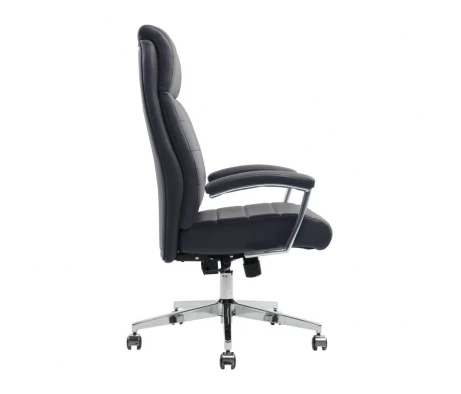 Кресло действительно поддерживает спину, на нем не устаешь сидеть часами. Оно очень устойчивое. Солидно и презентабельно выглядит. Кожзам плотный, но при этом набивка мягкая.