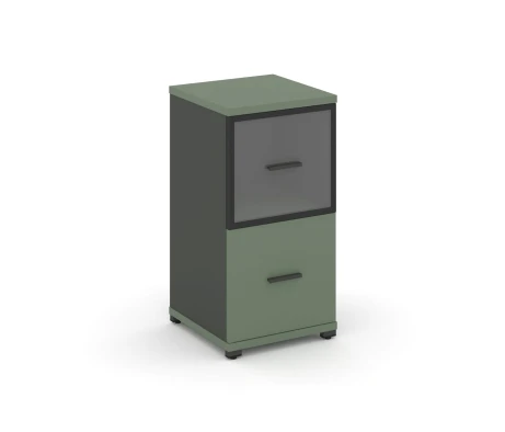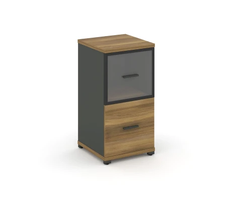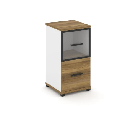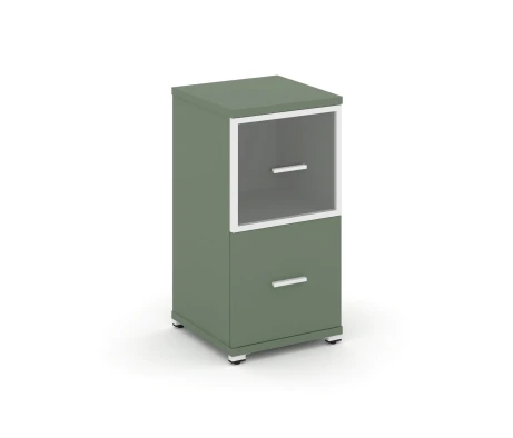 - Офисный шкаф с стеклянными дверями в алюминиевой рамке