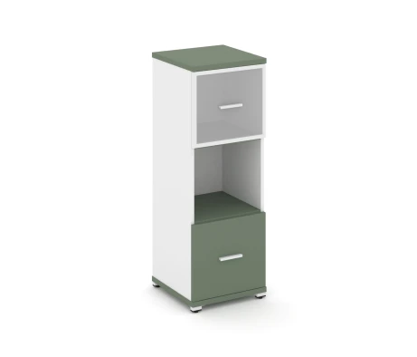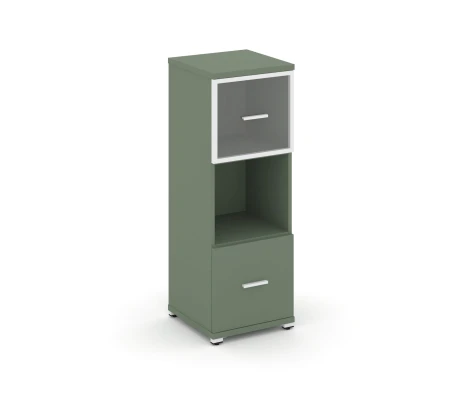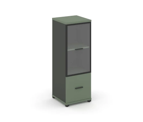 - Офисный шкаф с стеклянными дверями в алюминиевой рамке
