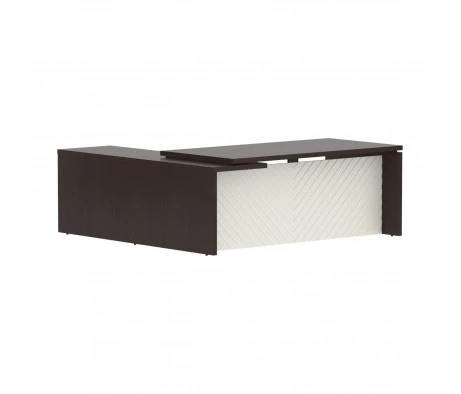 Я очень долго выбирала подходящий стол для работы. Эта модель мне понравилась сразу. Очень интересная форма, есть дополнительное место в виде тумбы. Выбирала между двумя цветами: Мерано-береза и Мерано-черно-коричневый. Выбрала в итоге второй вариант. Очень круто смотрится, безумно стильно и дорого. Спасибо вам, найс-офис!