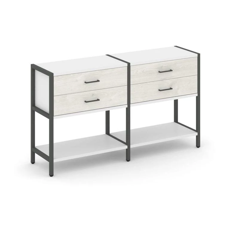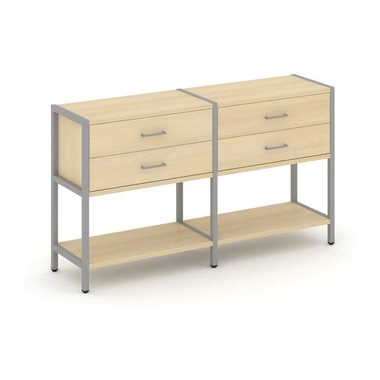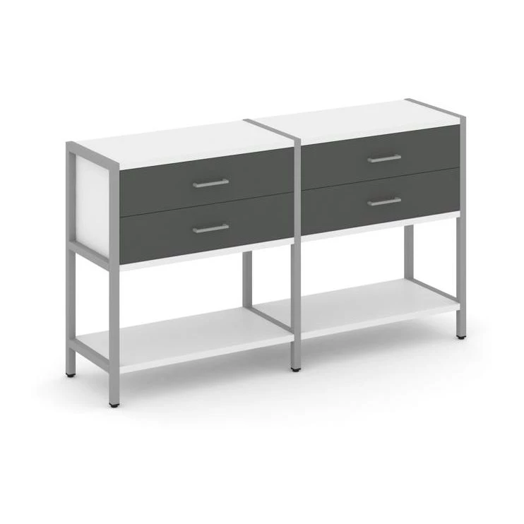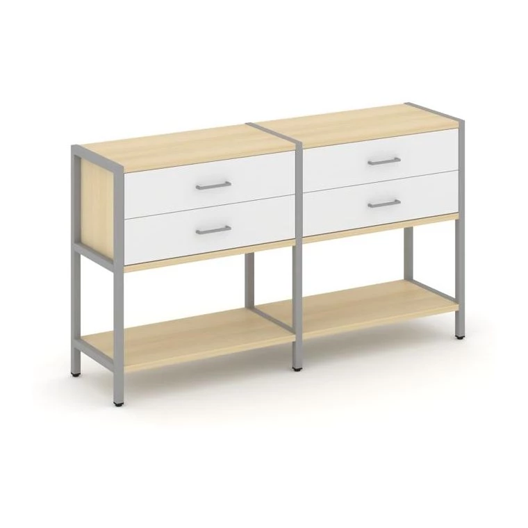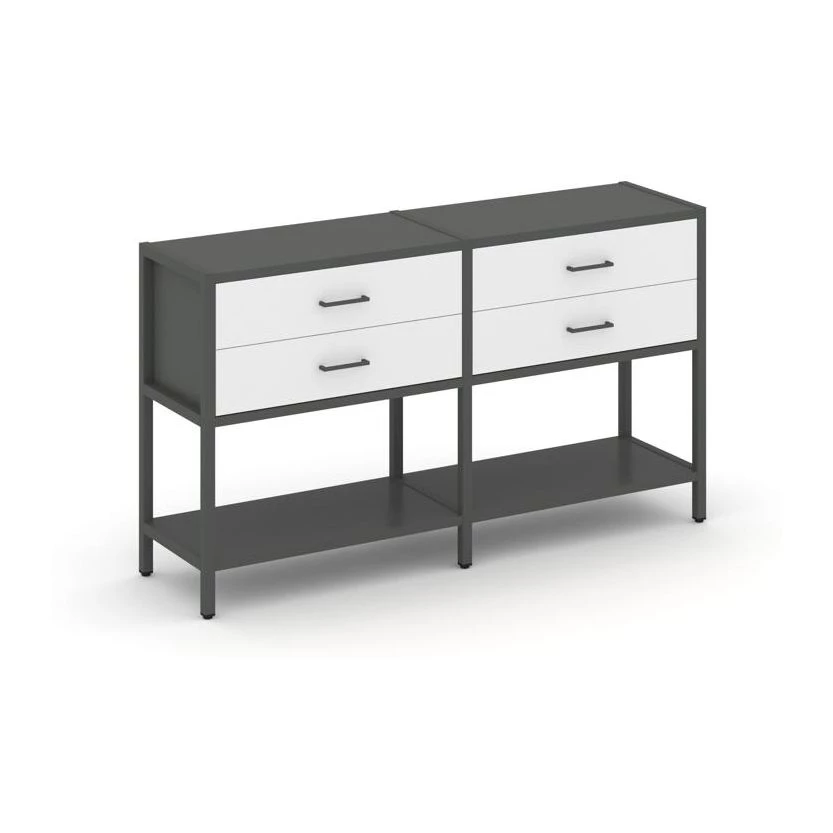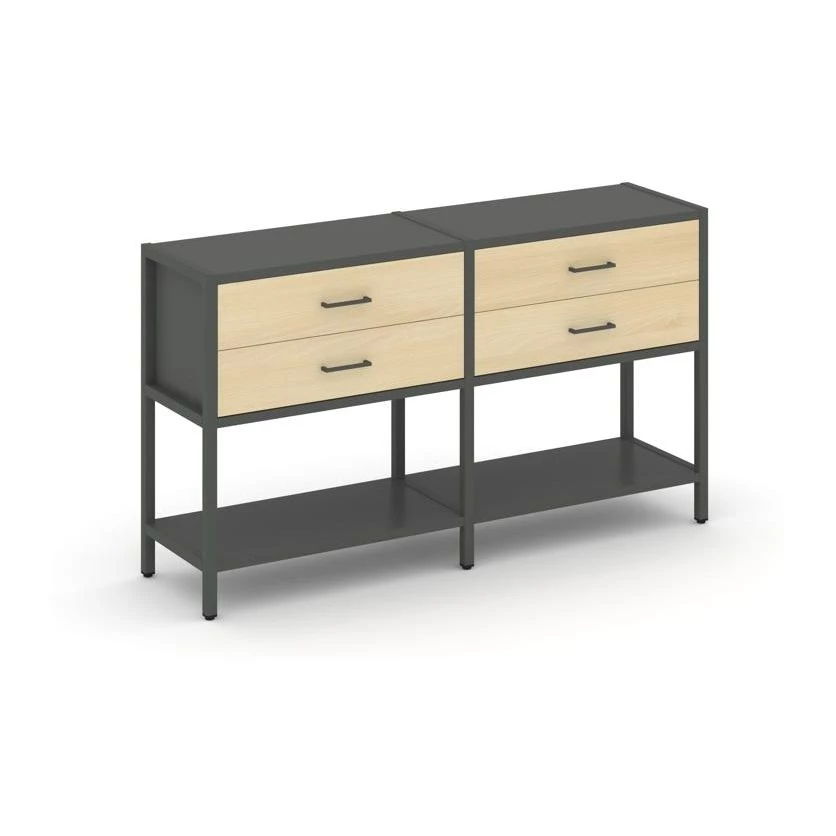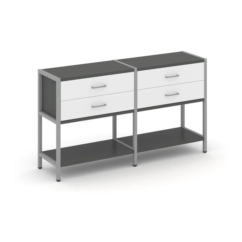 - Двухсекционный стеллаж двухярусный с ящиками 1590х400х879 Shelf System