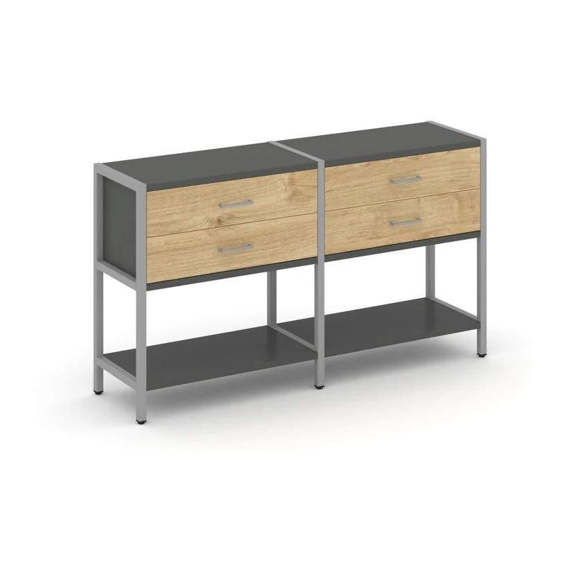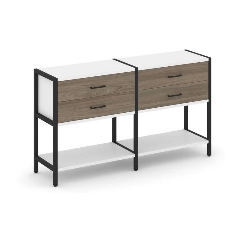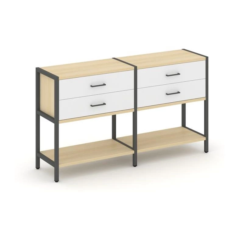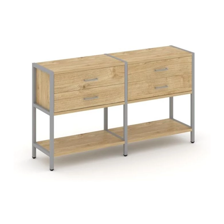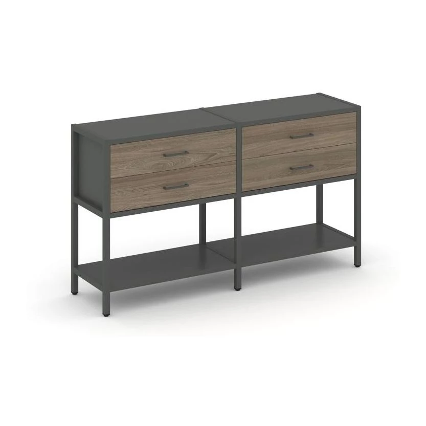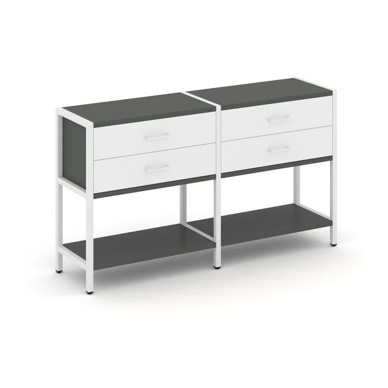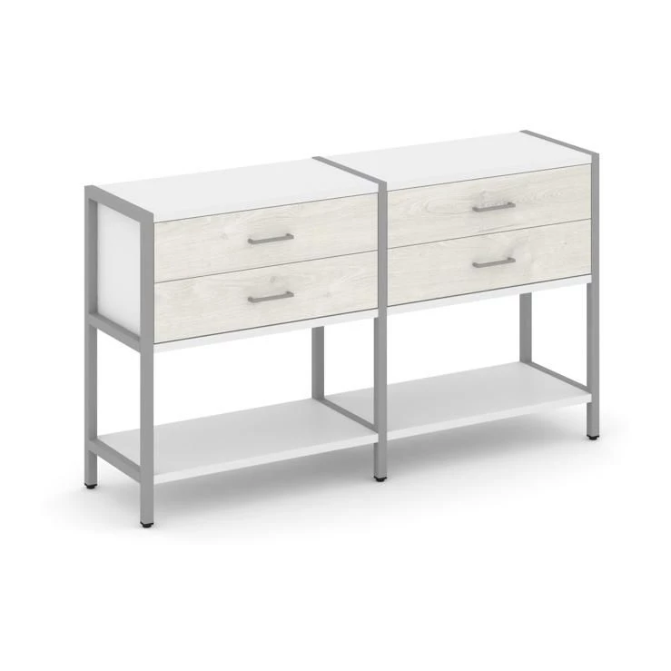 - Двухсекционный стеллаж двухярусный с ящиками 1590х400х879 Shelf System
