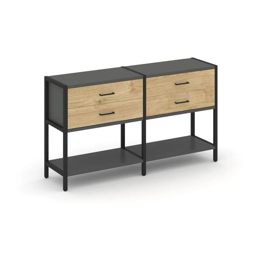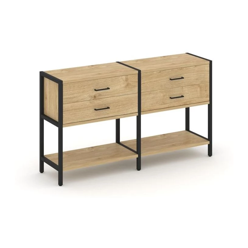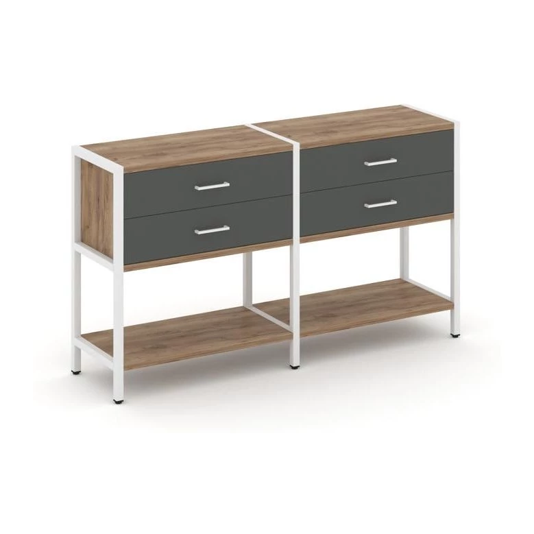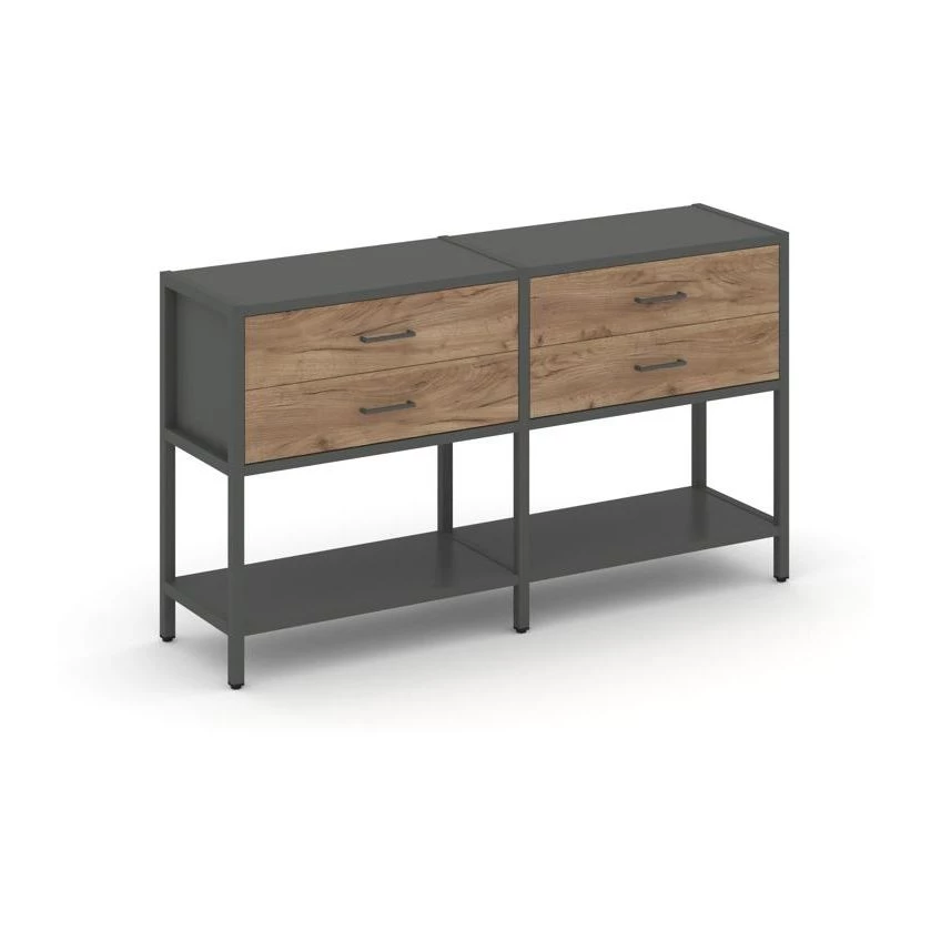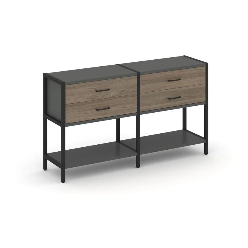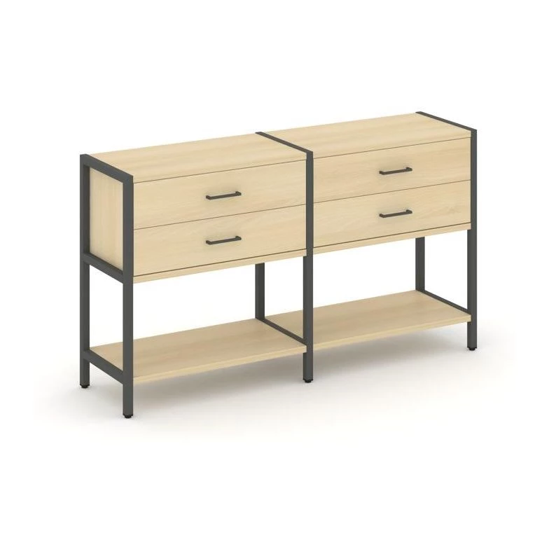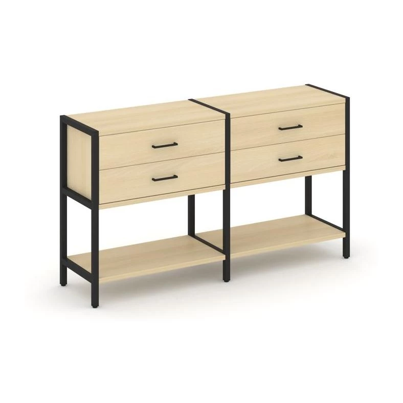 - Двухсекционный стеллаж двухярусный с ящиками 1590х400х879 Shelf System