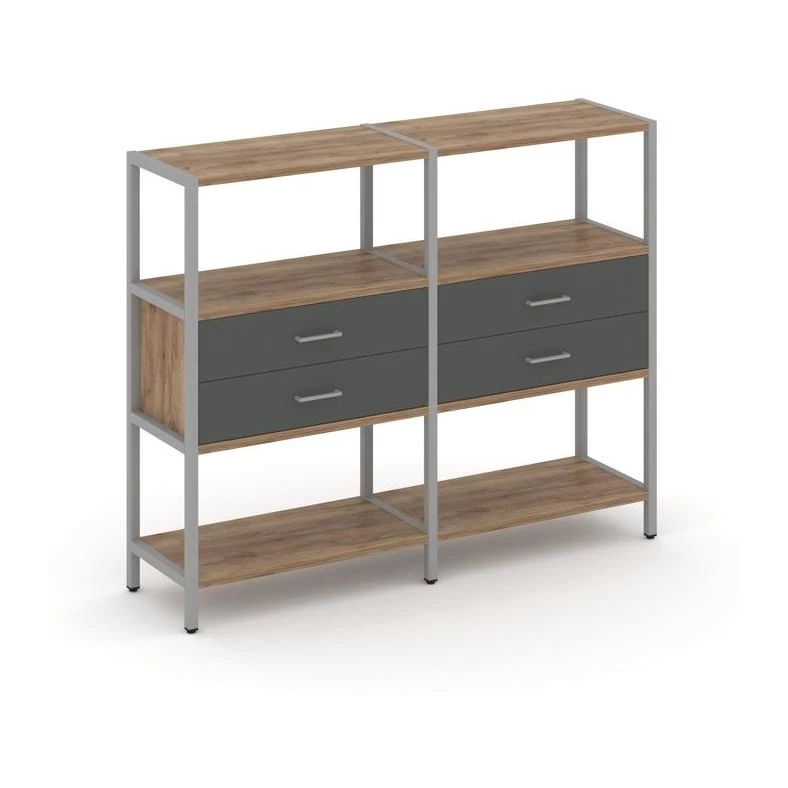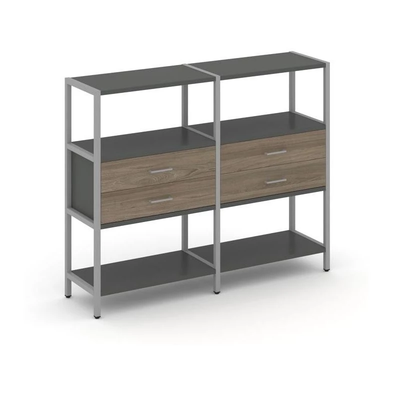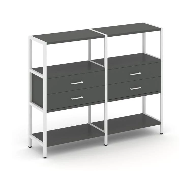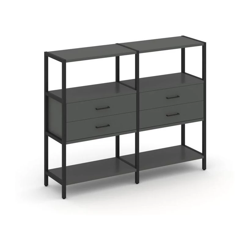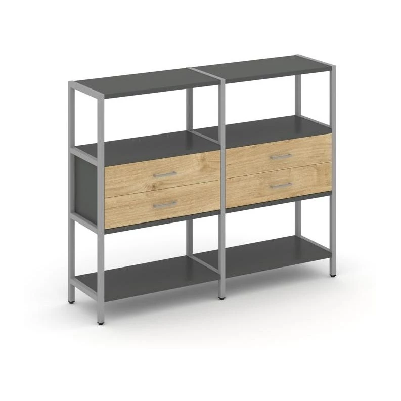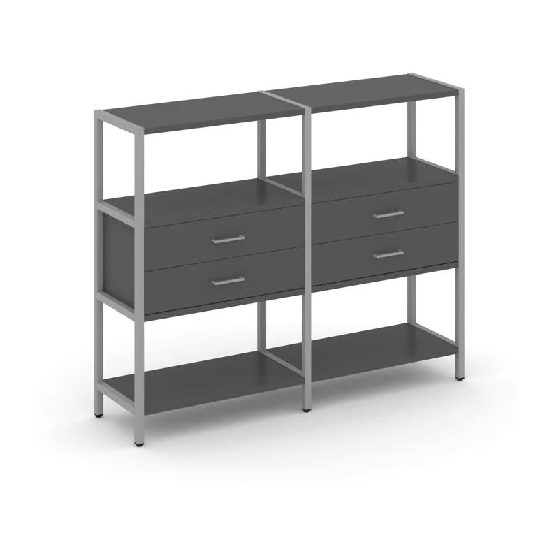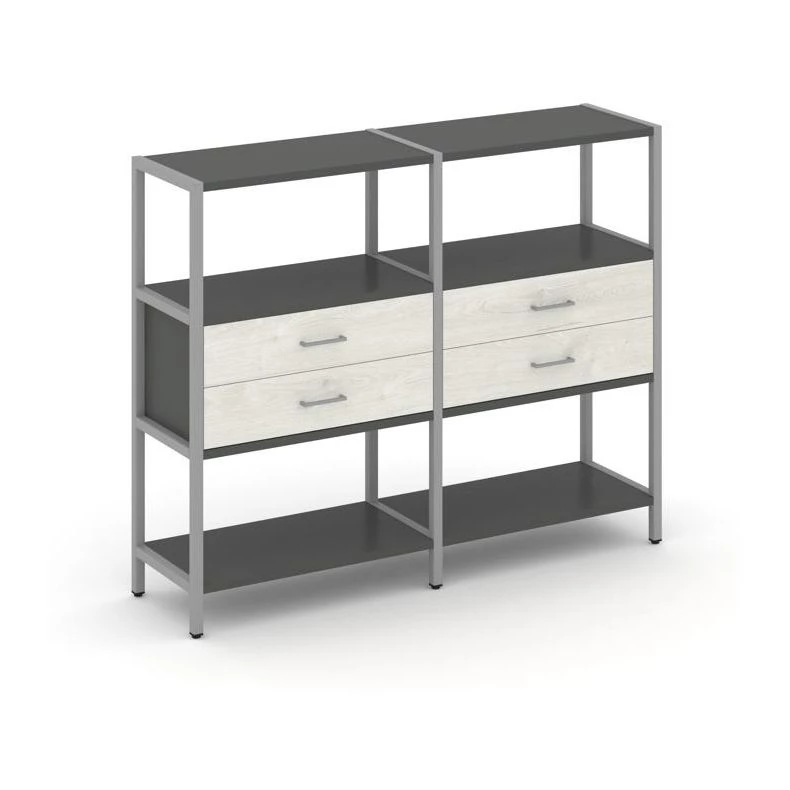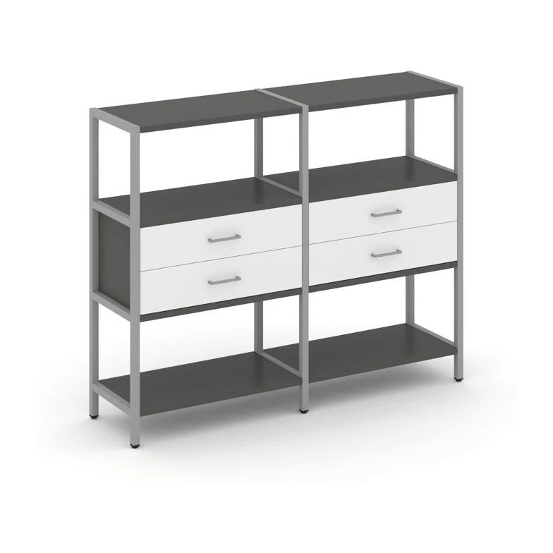 Двухсекционный стеллаж трехярусный с ящиками на одном ярусе 1590х400х1246 Shelf System