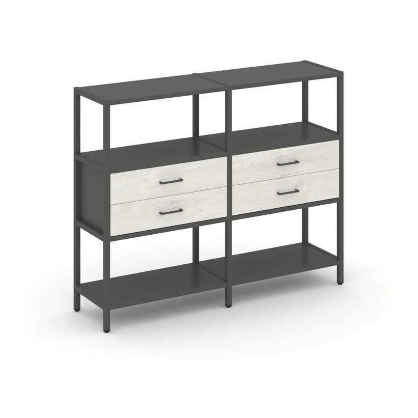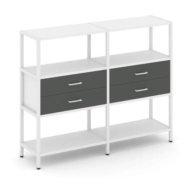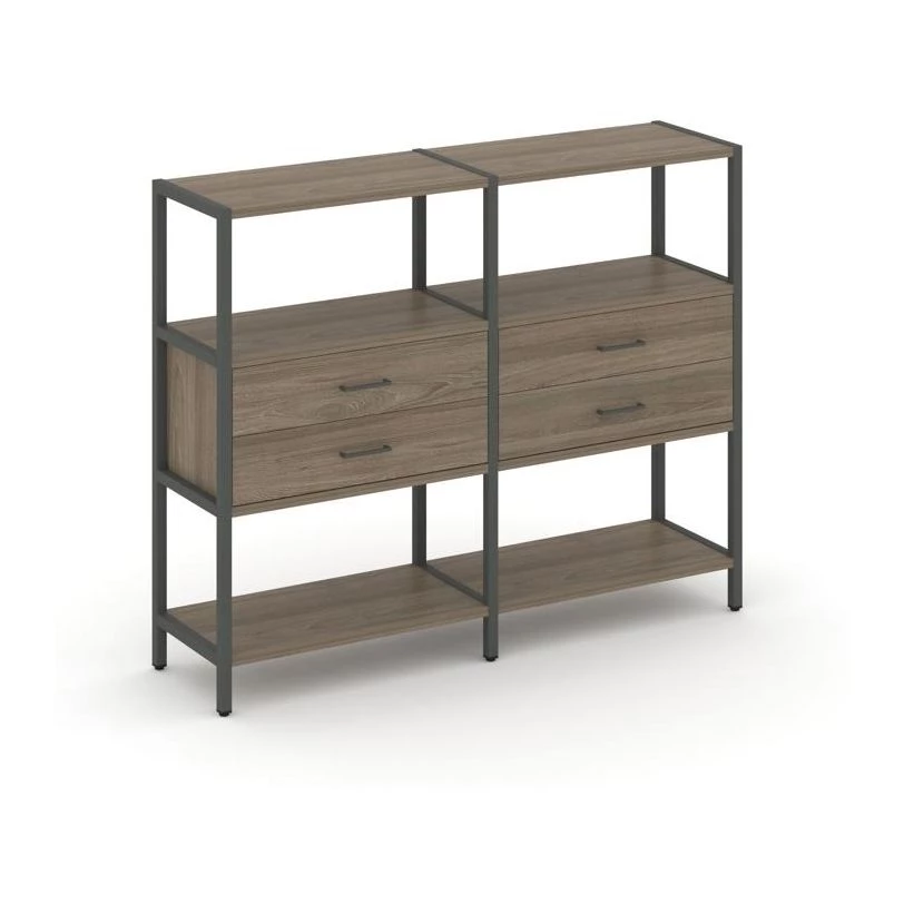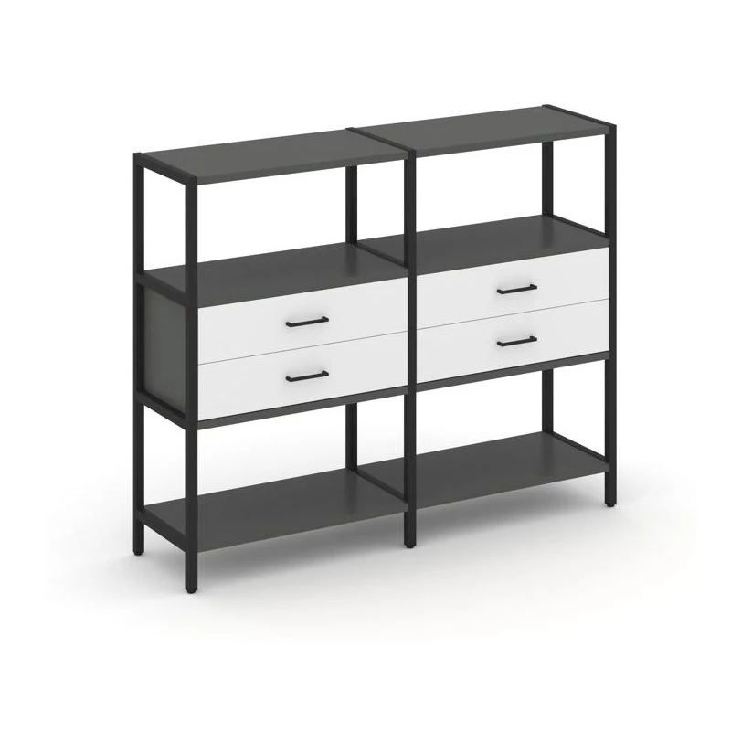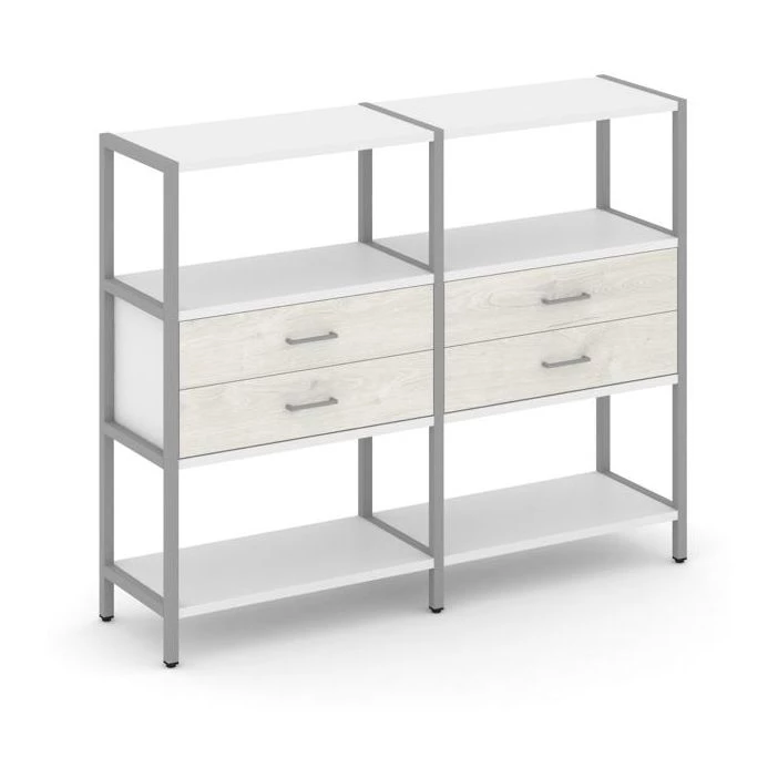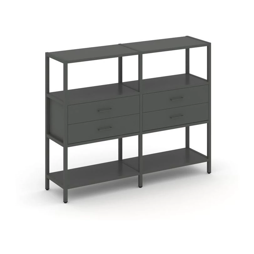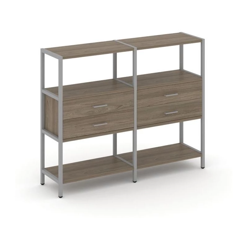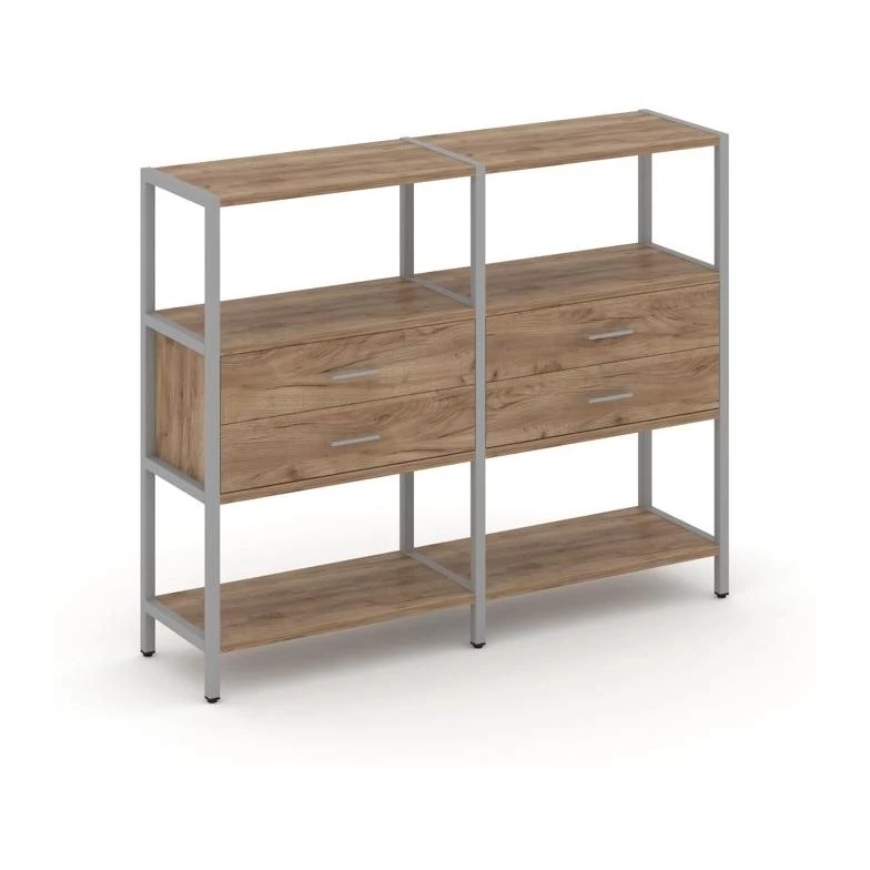 Двухсекционный стеллаж трехярусный с ящиками на одном ярусе 1590х400х1246 Shelf System