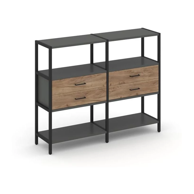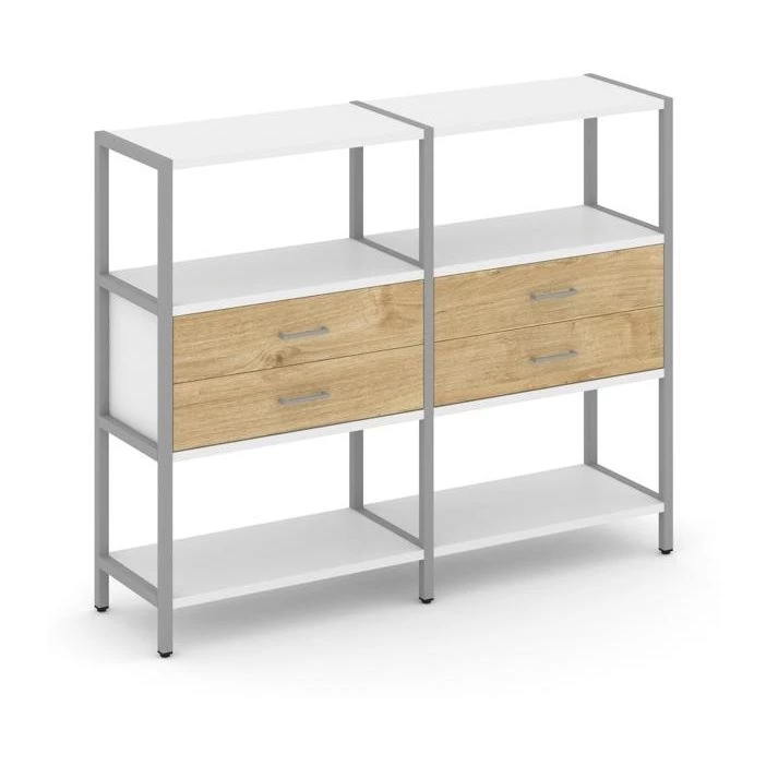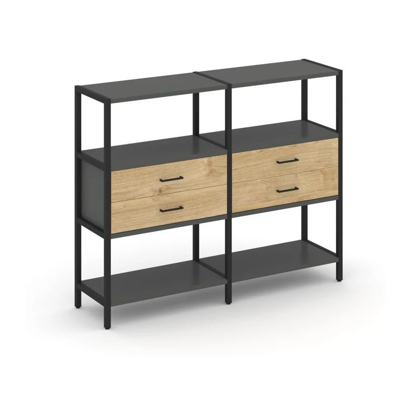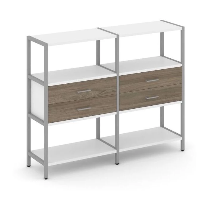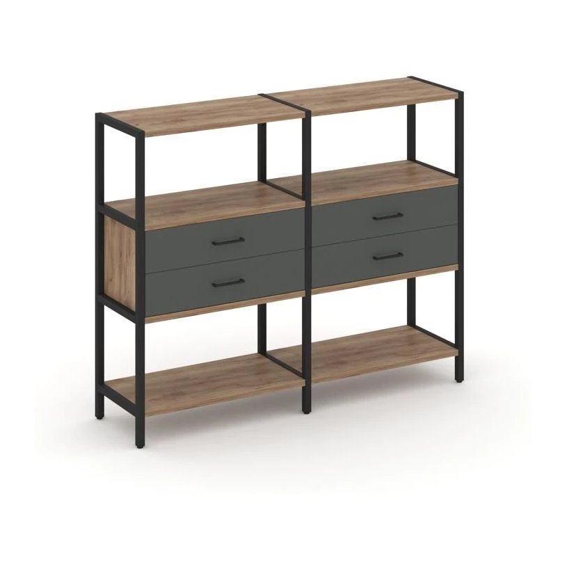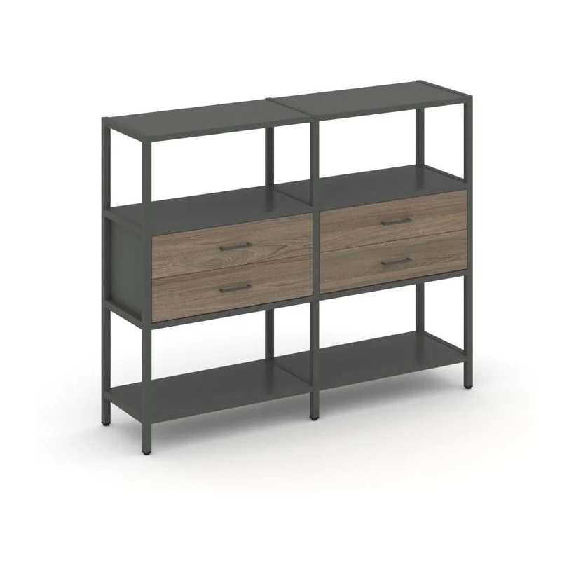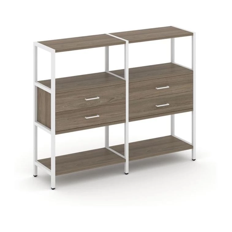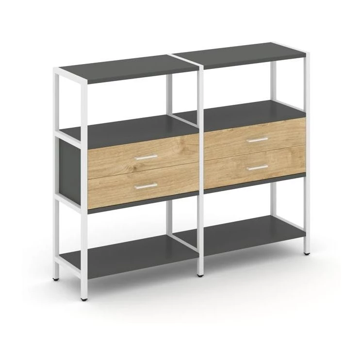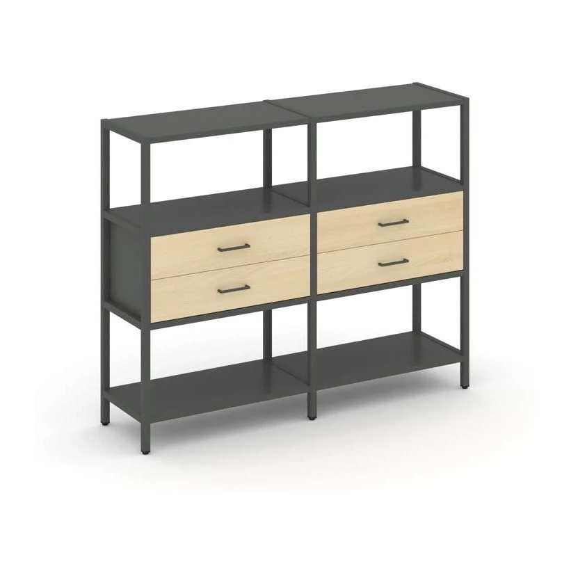 Двухсекционный стеллаж трехярусный с ящиками на одном ярусе 1590х400х1246 Shelf System