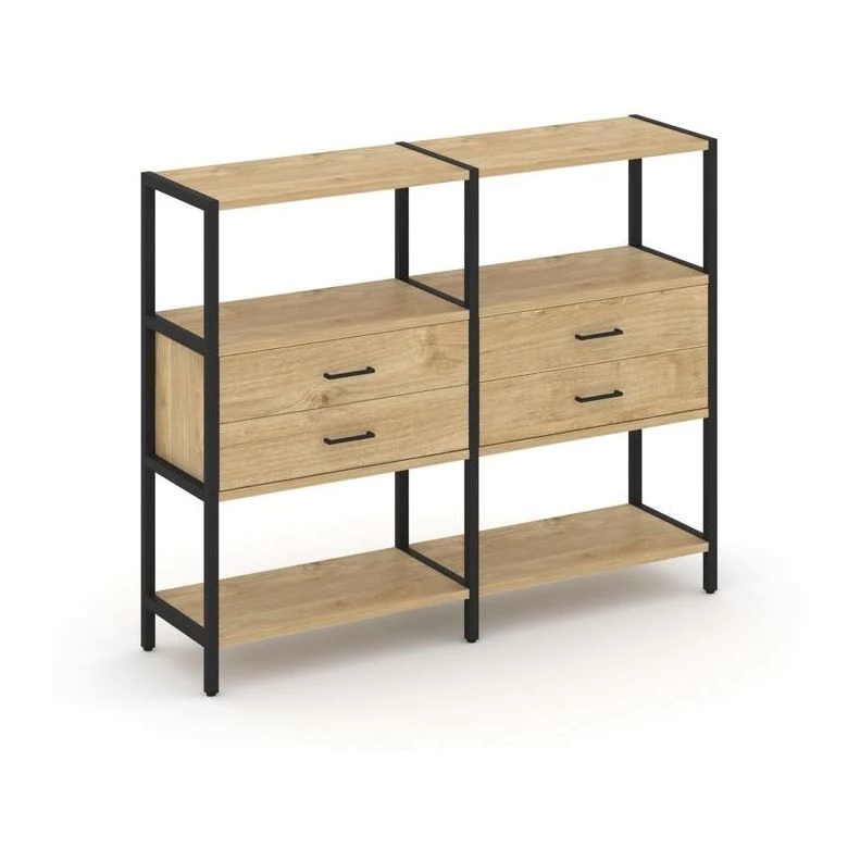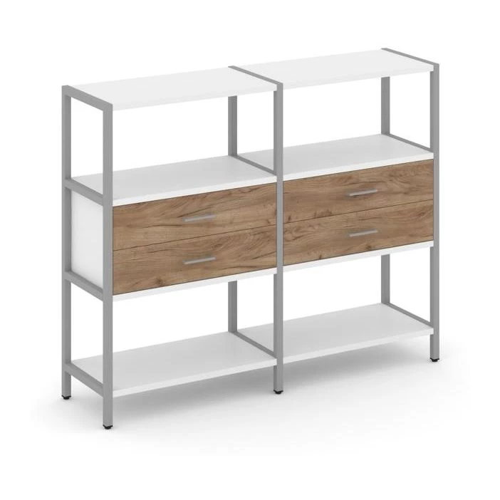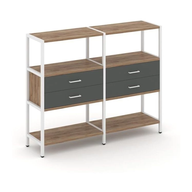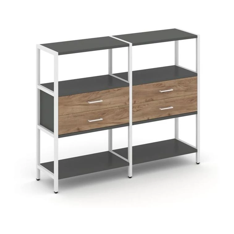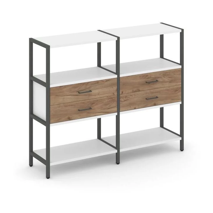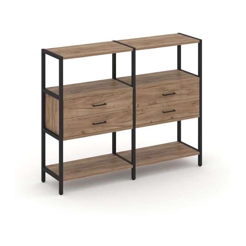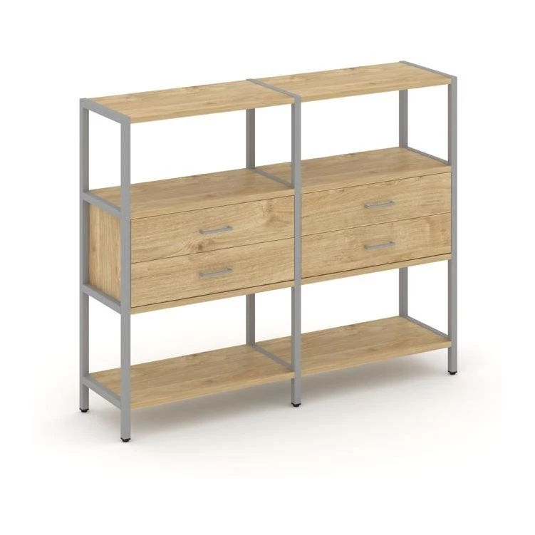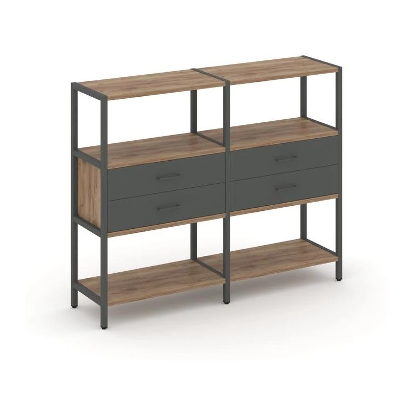 Двухсекционный стеллаж трехярусный с ящиками на одном ярусе 1590х400х1246 Shelf System