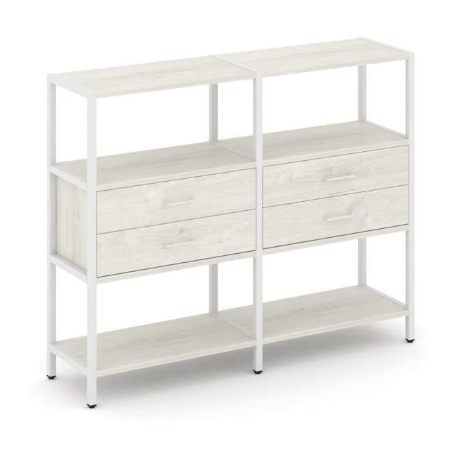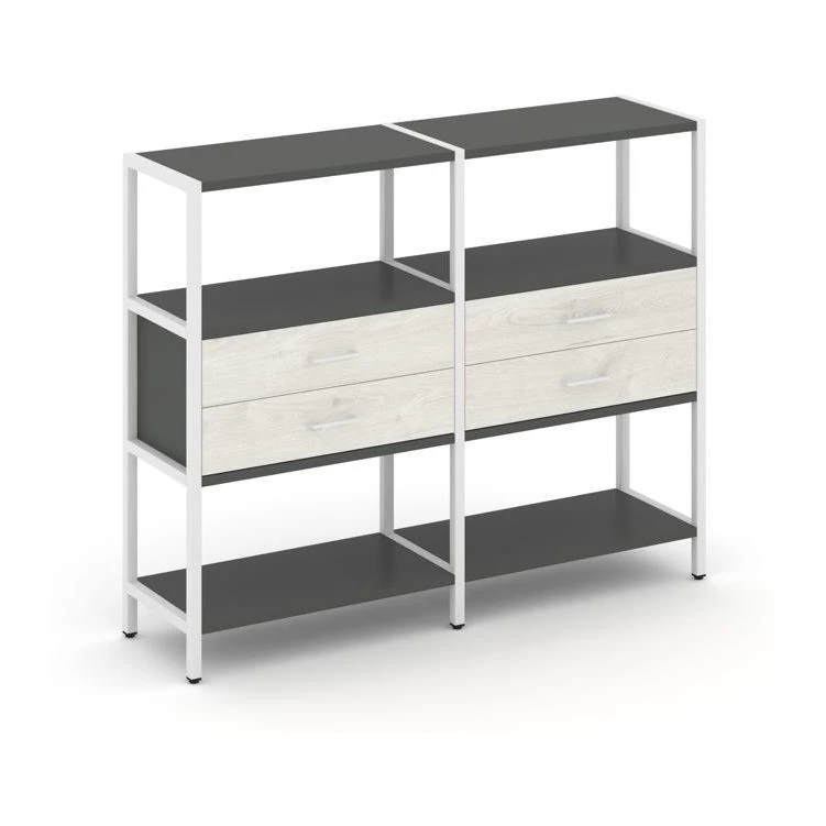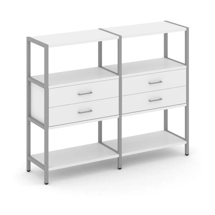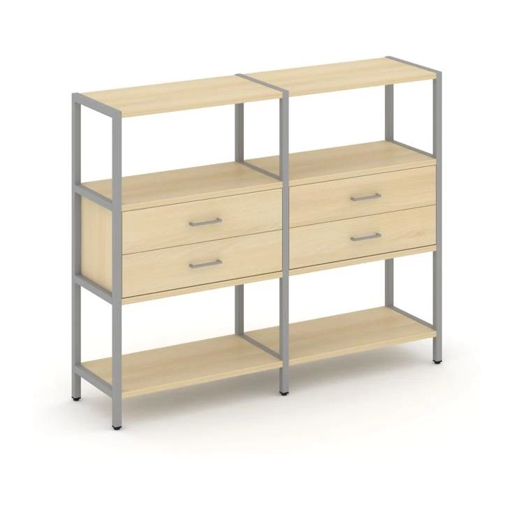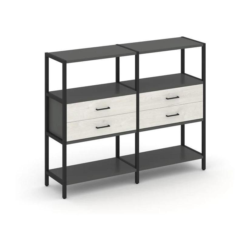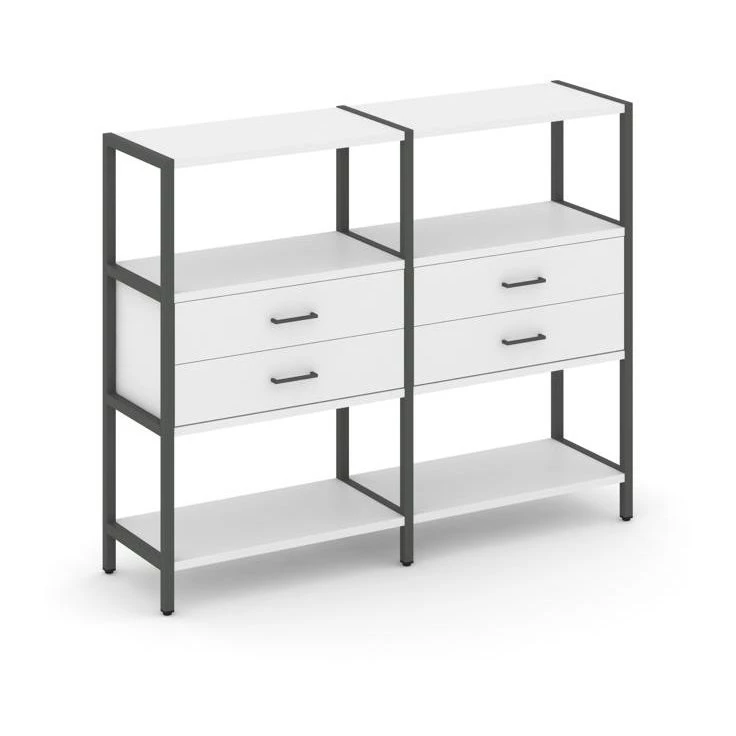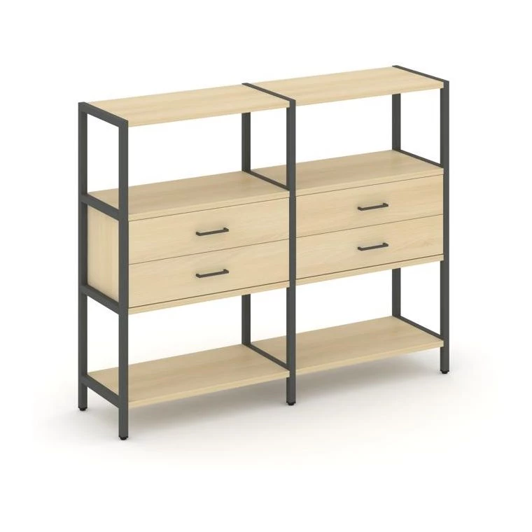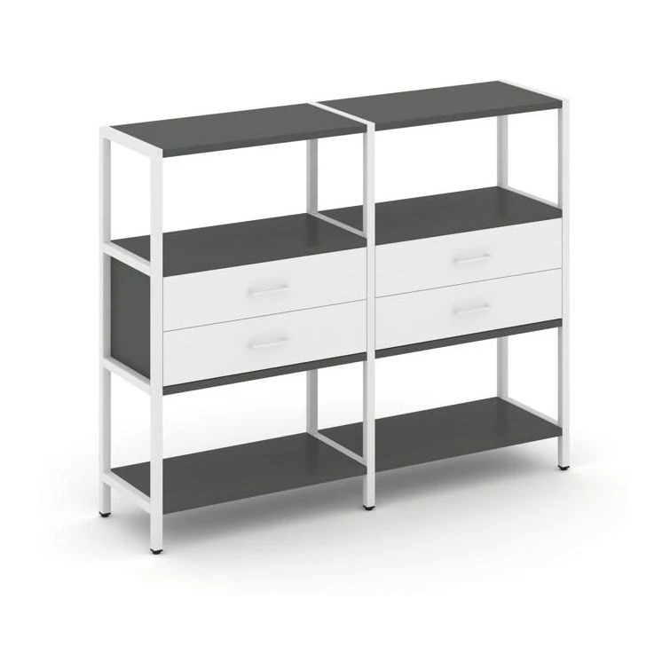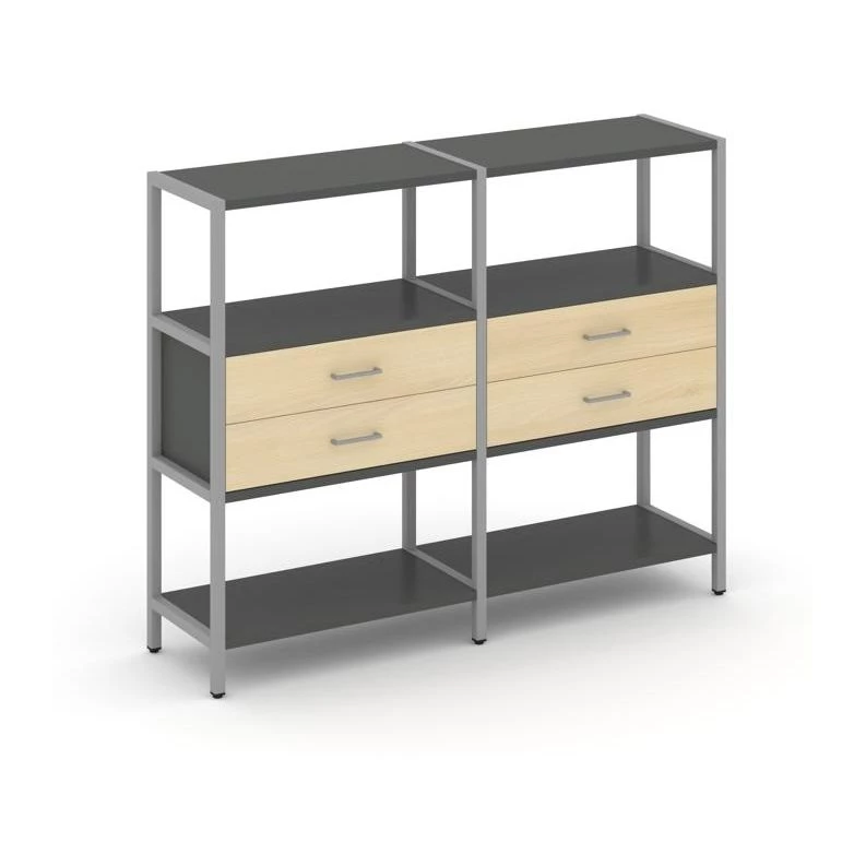 - Двухсекционный стеллаж трехярусный с ящиками на одном ярусе 1590х400х1246 Shelf System
