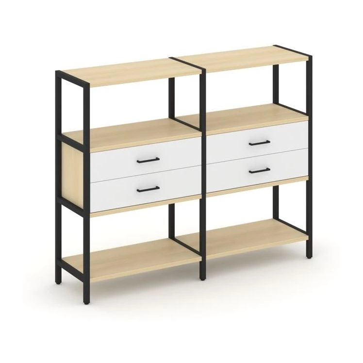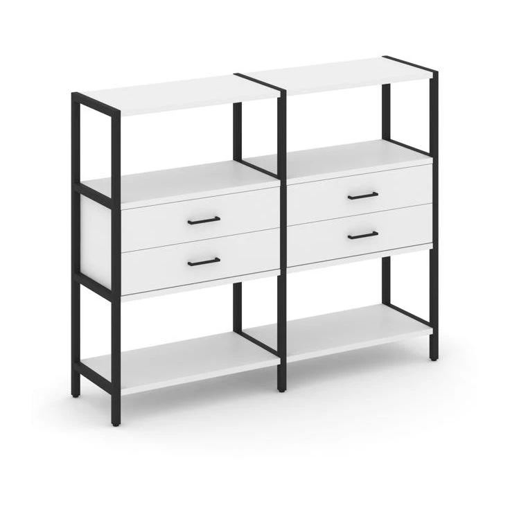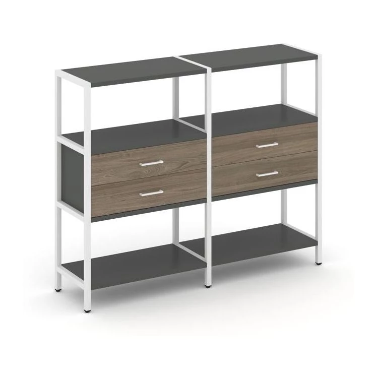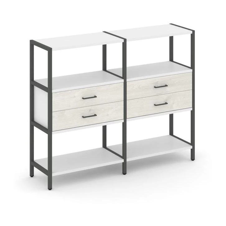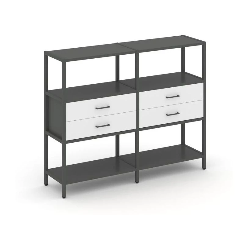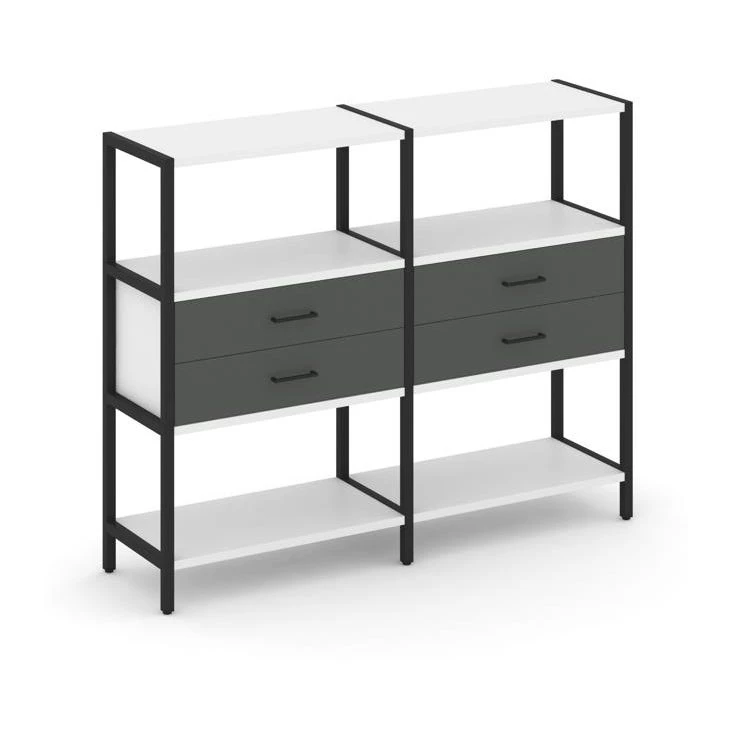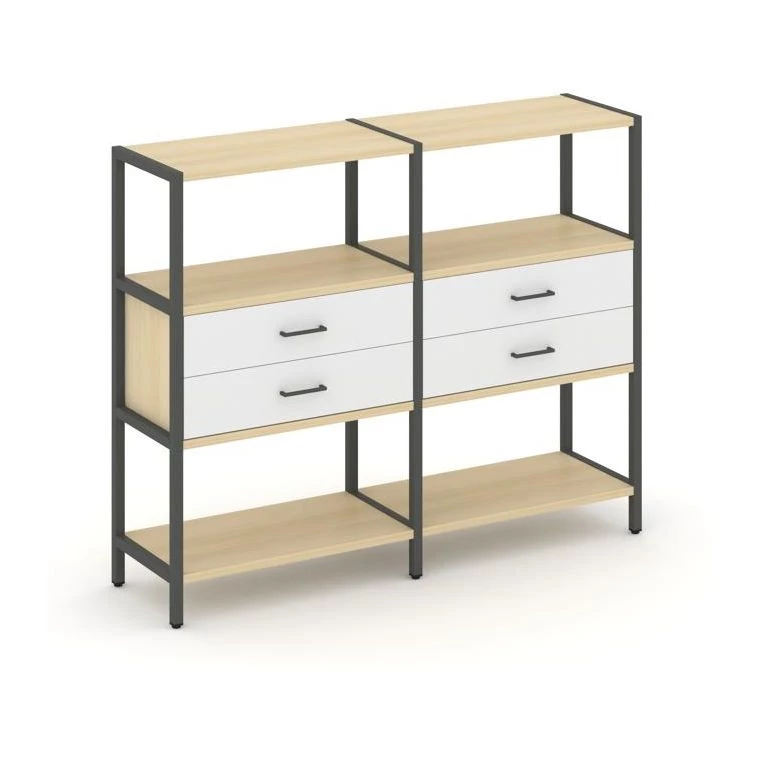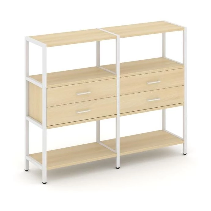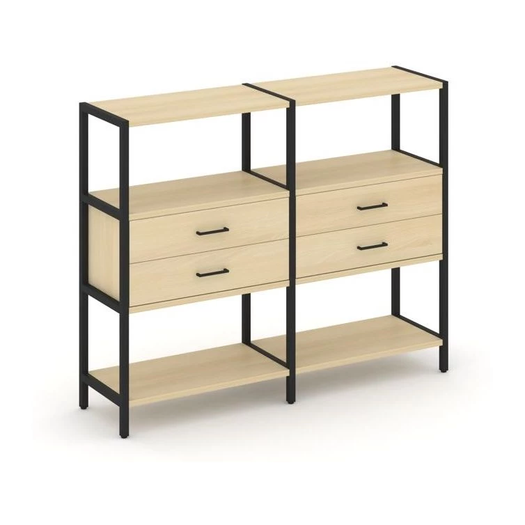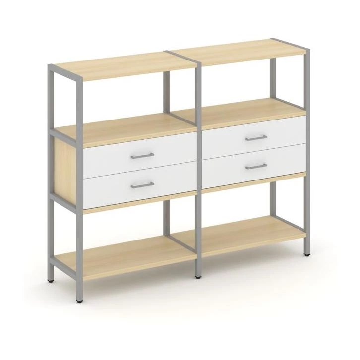 - Двухсекционный стеллаж трехярусный с ящиками на одном ярусе 1590х400х1246 Shelf System