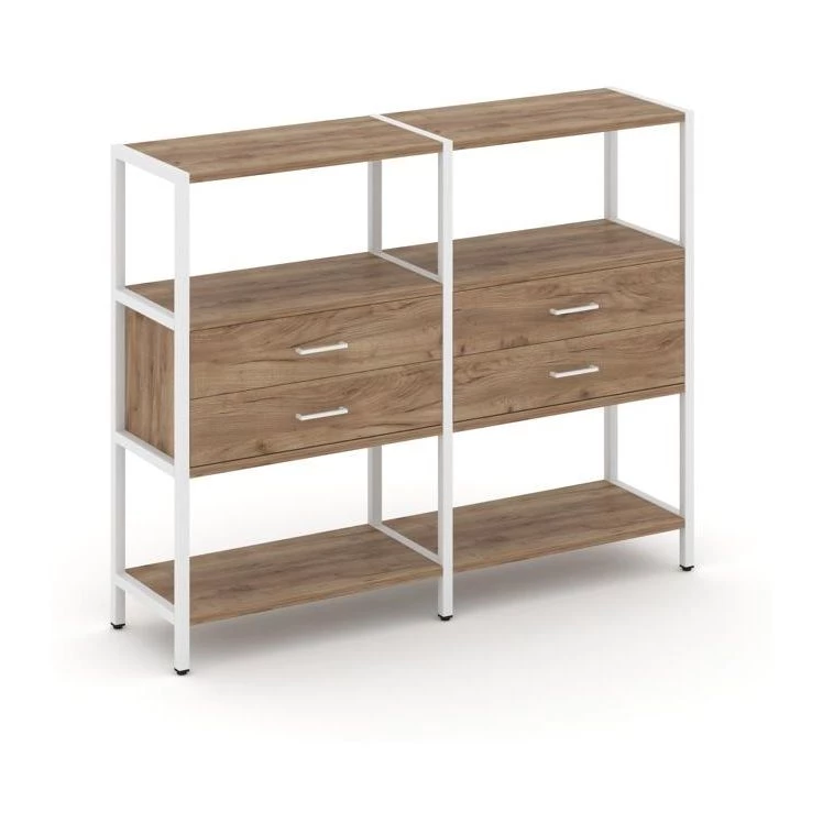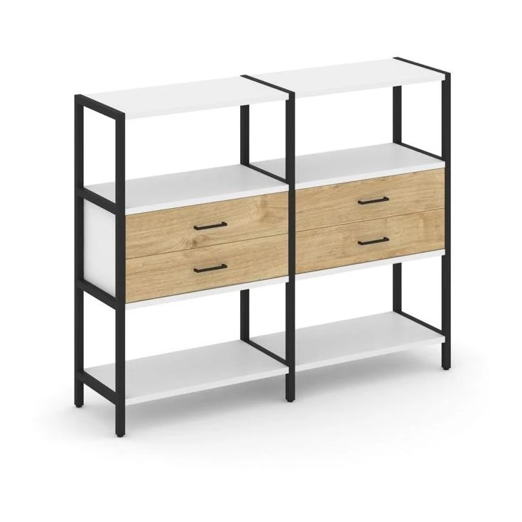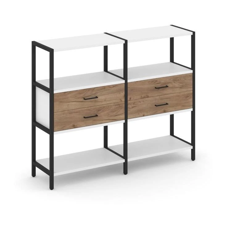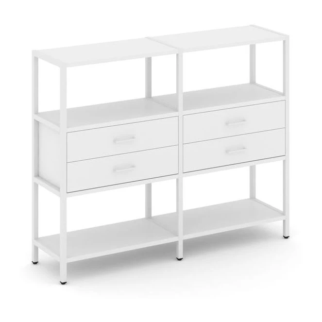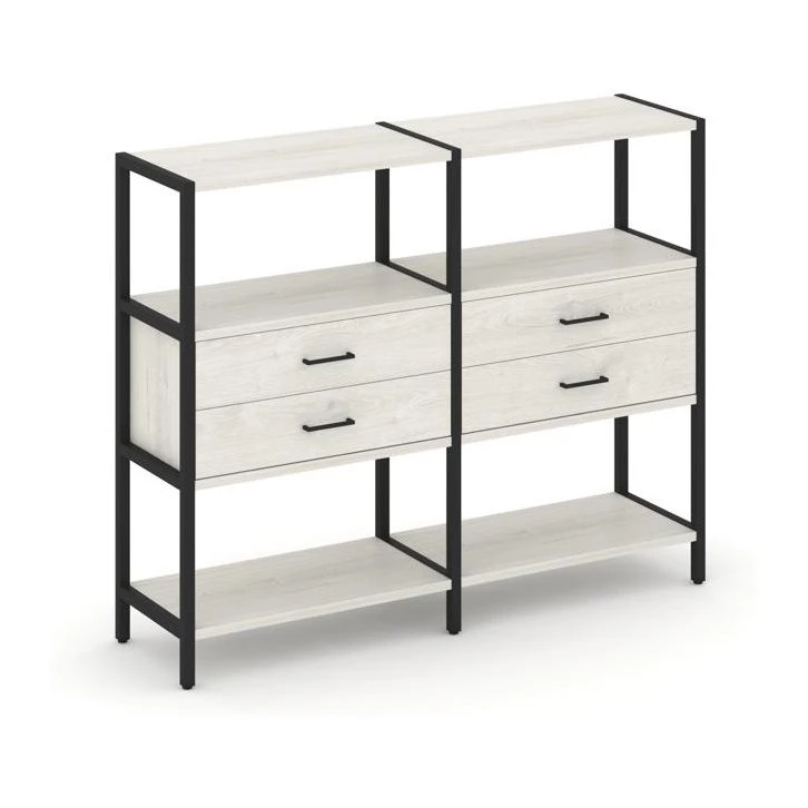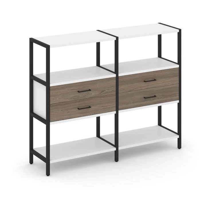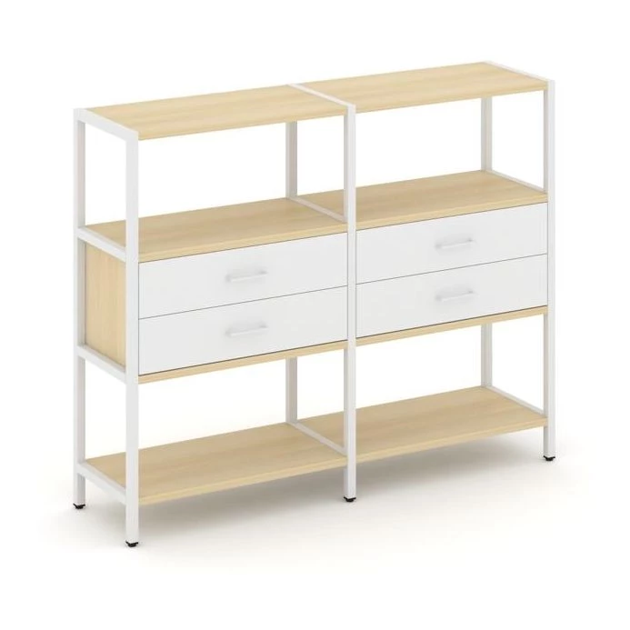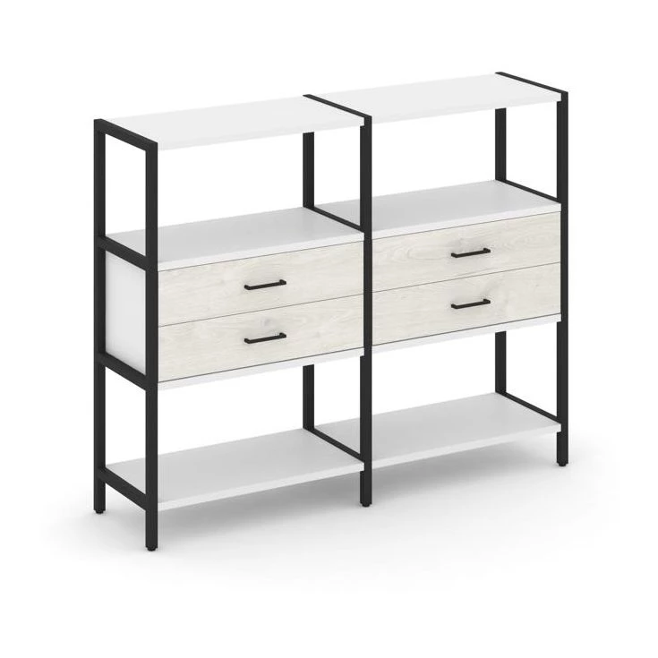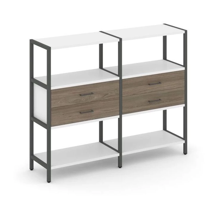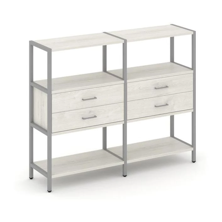 - Двухсекционный стеллаж трехярусный с ящиками на одном ярусе 1590х400х1246 Shelf System