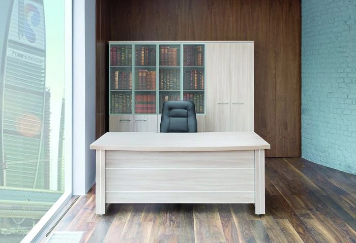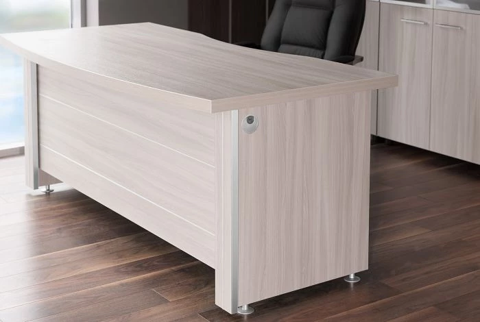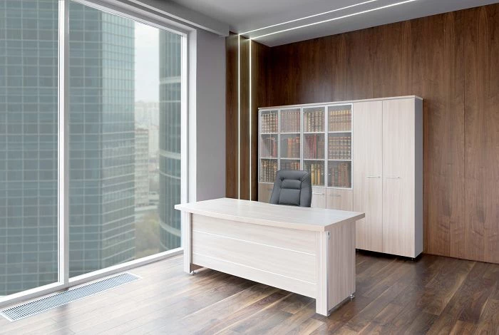 Немаловажными при выборе меблировки считаются материалы, из которых она производится. Кабинет руководителя Belfast изготавливается из высококачественной ЛДСП, верхнее защитное покрытие предотвращает негативное воздействие солнечных лучей, влаги и на столешнице не остается следов от чашек с кофе. Толщина рабочей столешницы 41 мм, это придает солидности облику и гарантирует способность выдержать большие нагрузки.