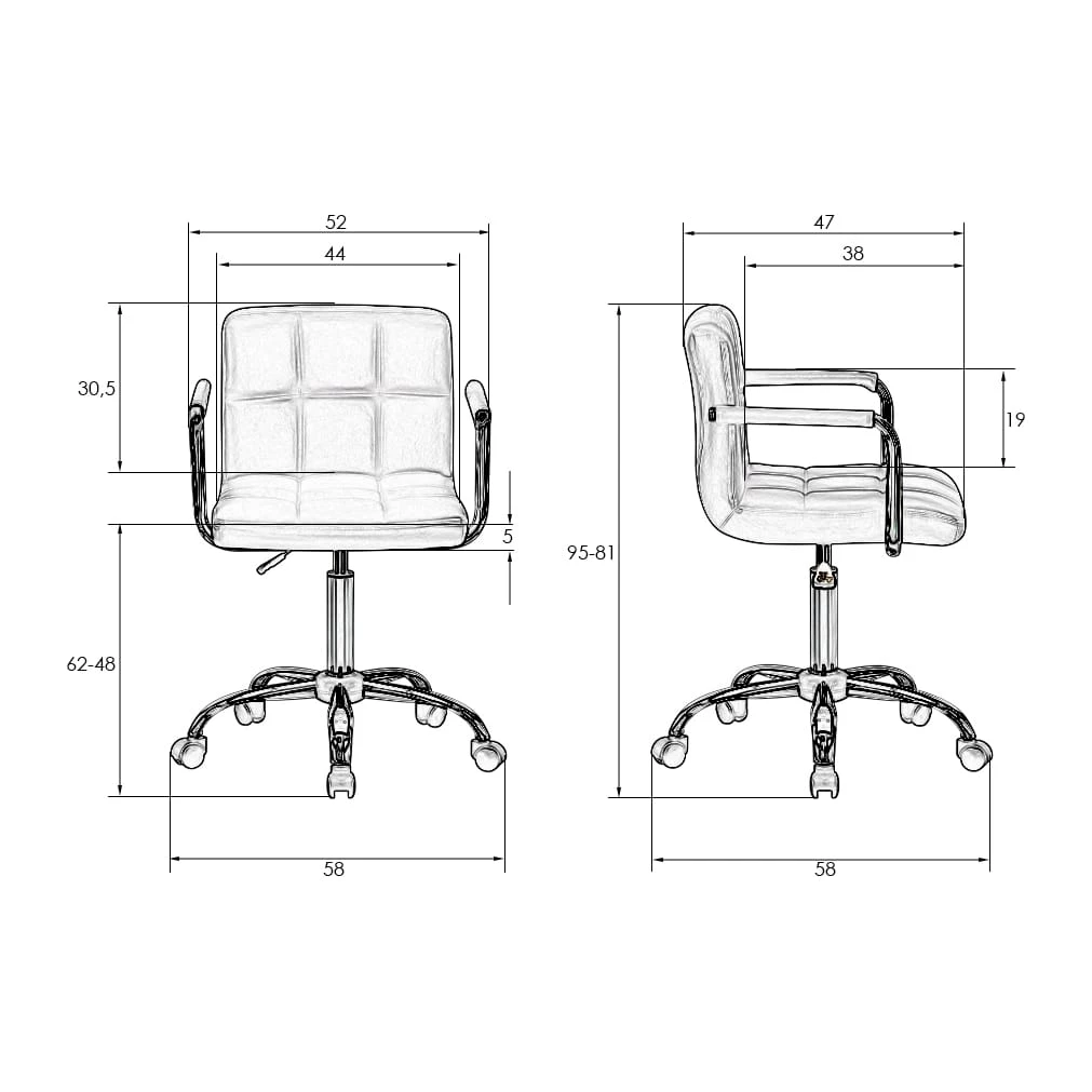 Подлокотники: металлические с накладками