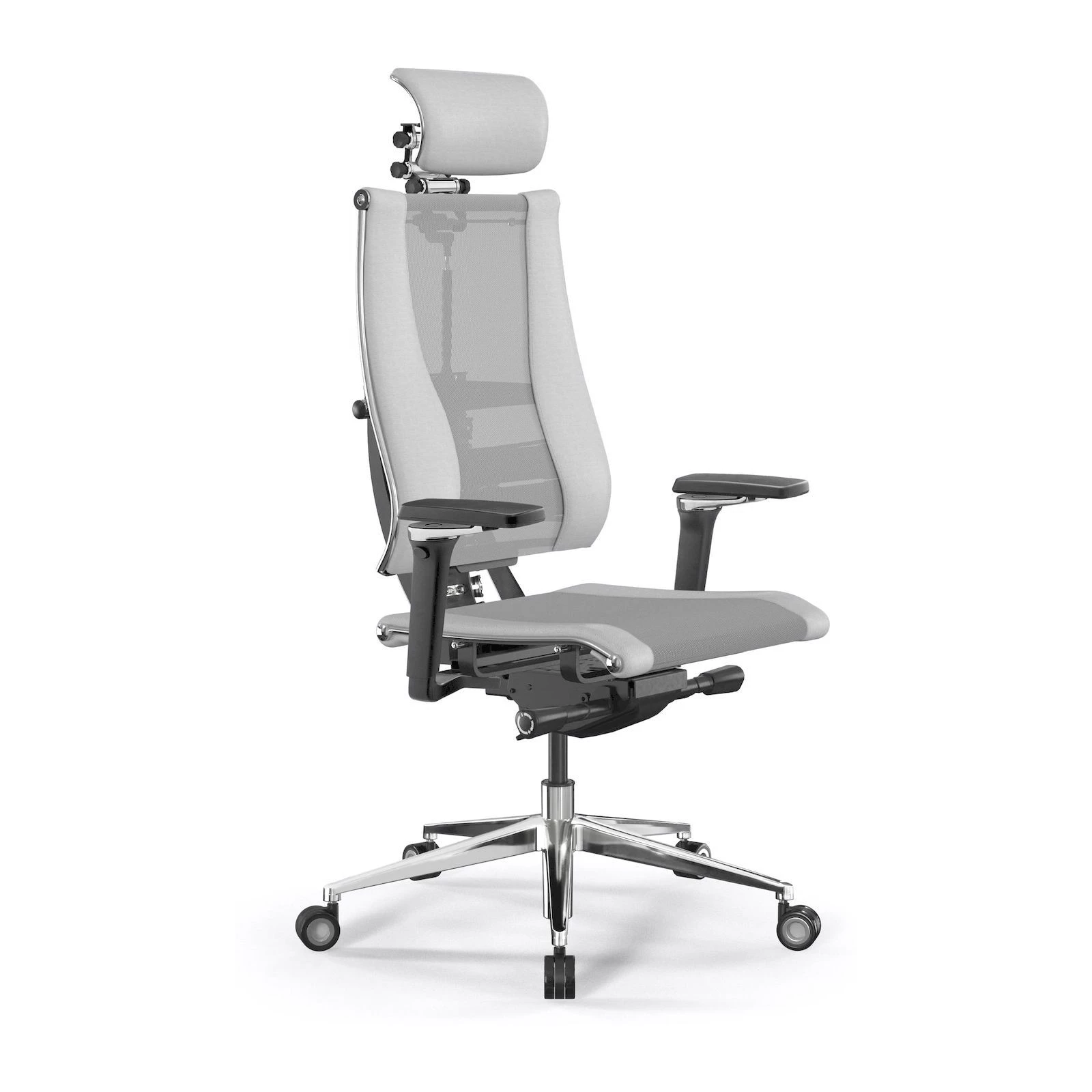 Кресло Y 4DF B2-14D M26.B35.G25.W04 (подгл.1) Сетка/Экокожа, Светло-серый/Белый