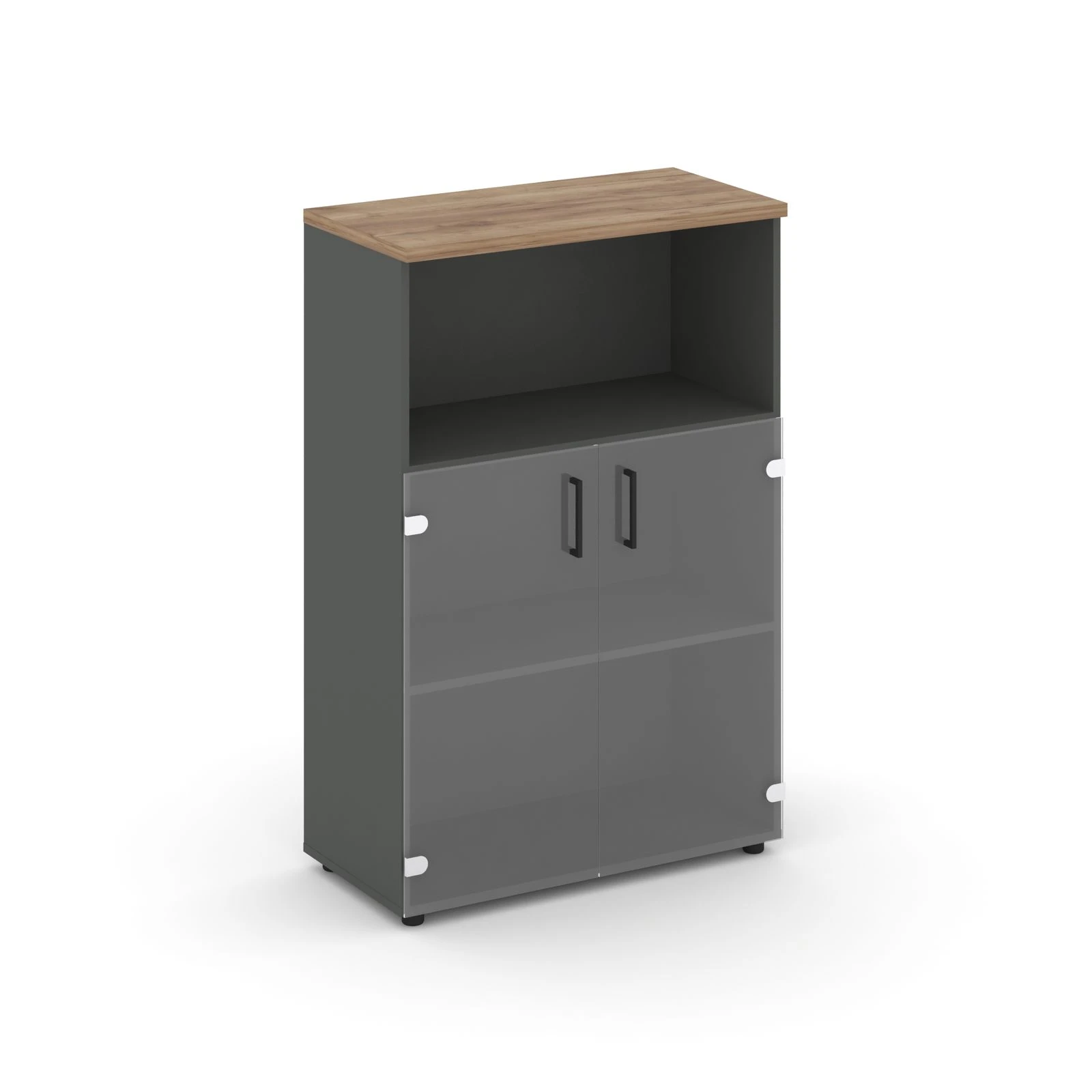 Шкаф средний широкий прозр. стекло с нишей 796x400x1203 зад. стенка HDF Стайл Проджект / Style Project