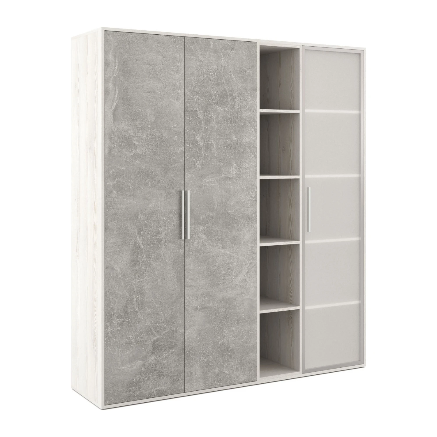 Шкаф высокий 3 створки стекло, с нишей Бетон / B-tone Сосна/Бетон светлый