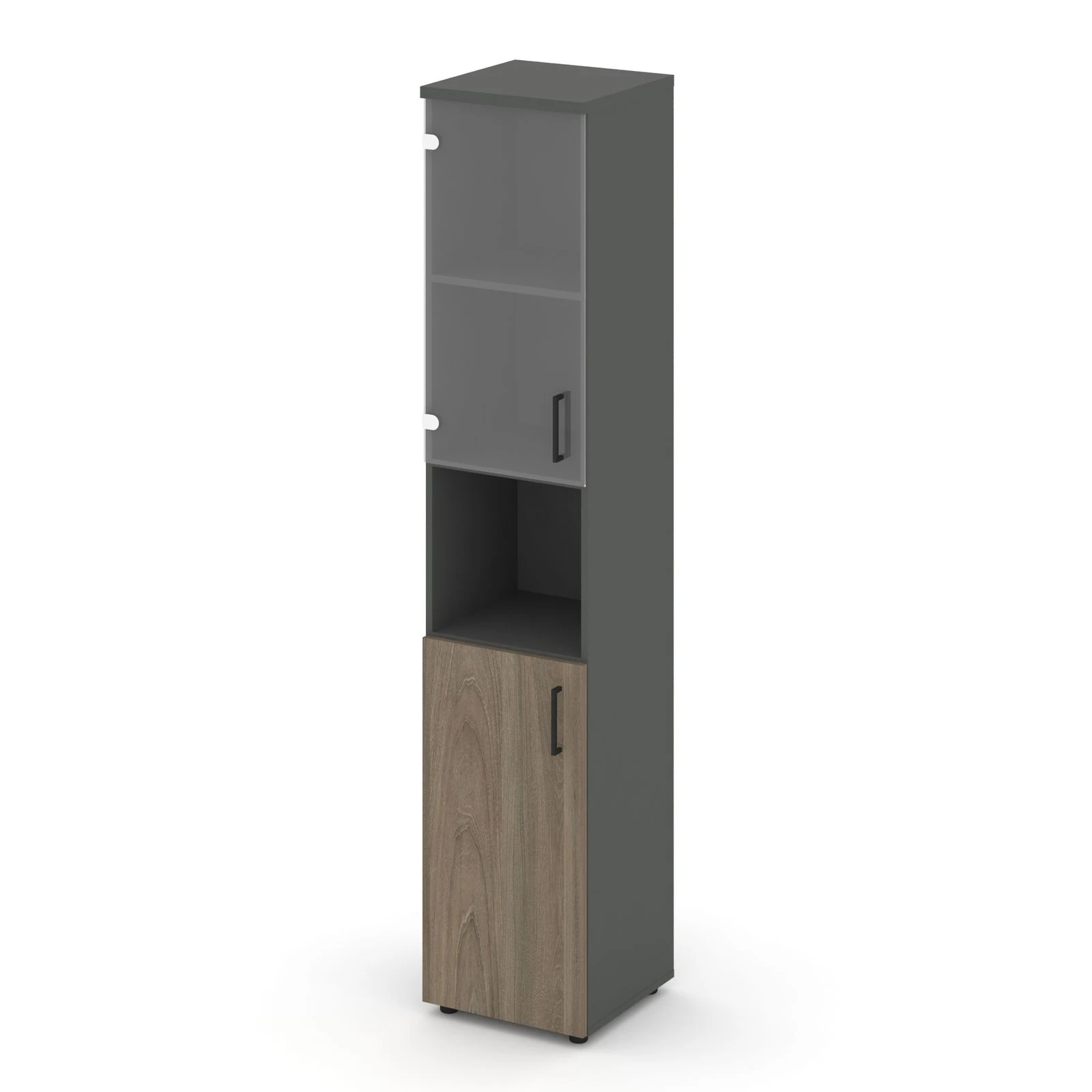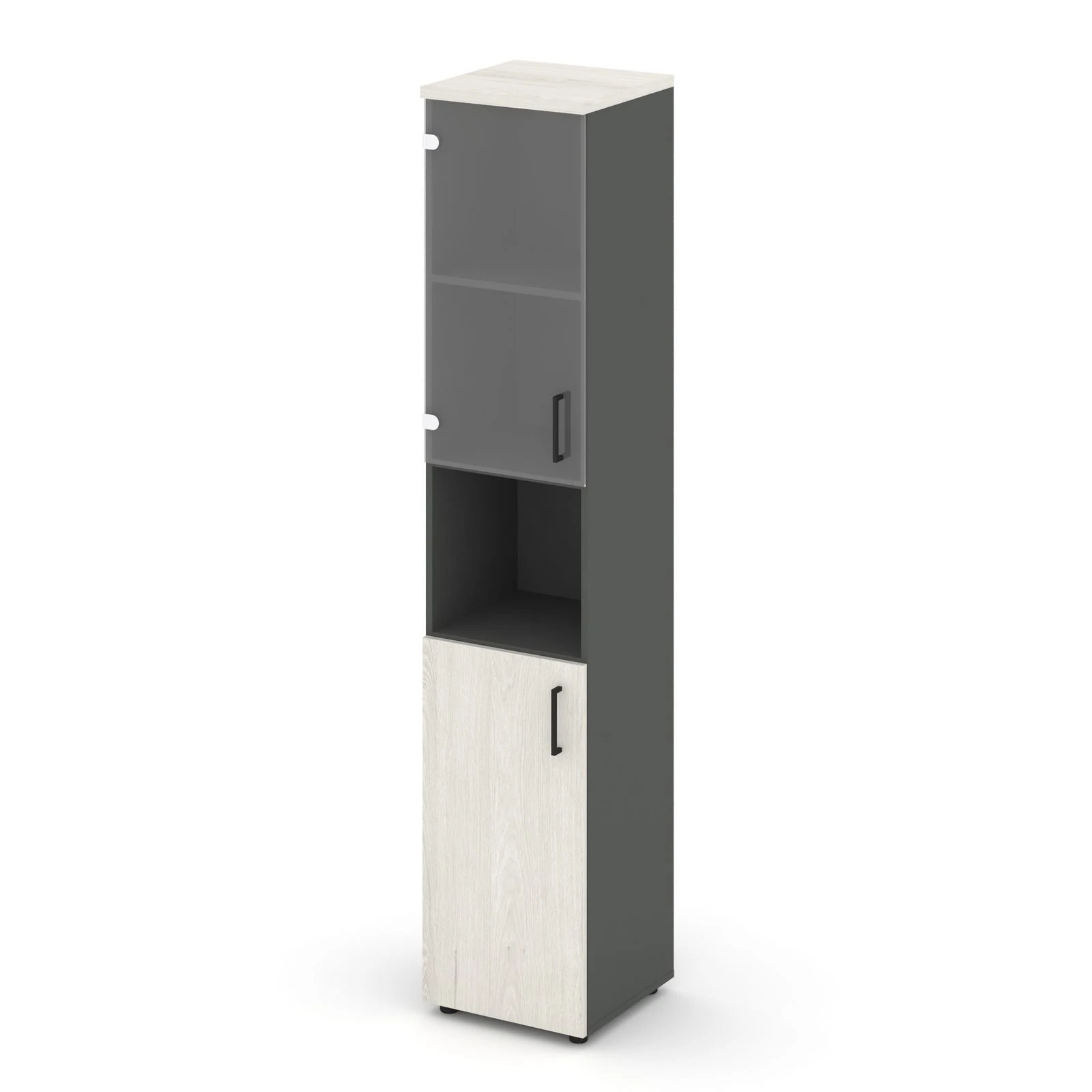 Шкаф высокий узкий с нишей прозр. стекло левый 400x400x1982 зад. стенка HDF Стайл Проджект / Style Project