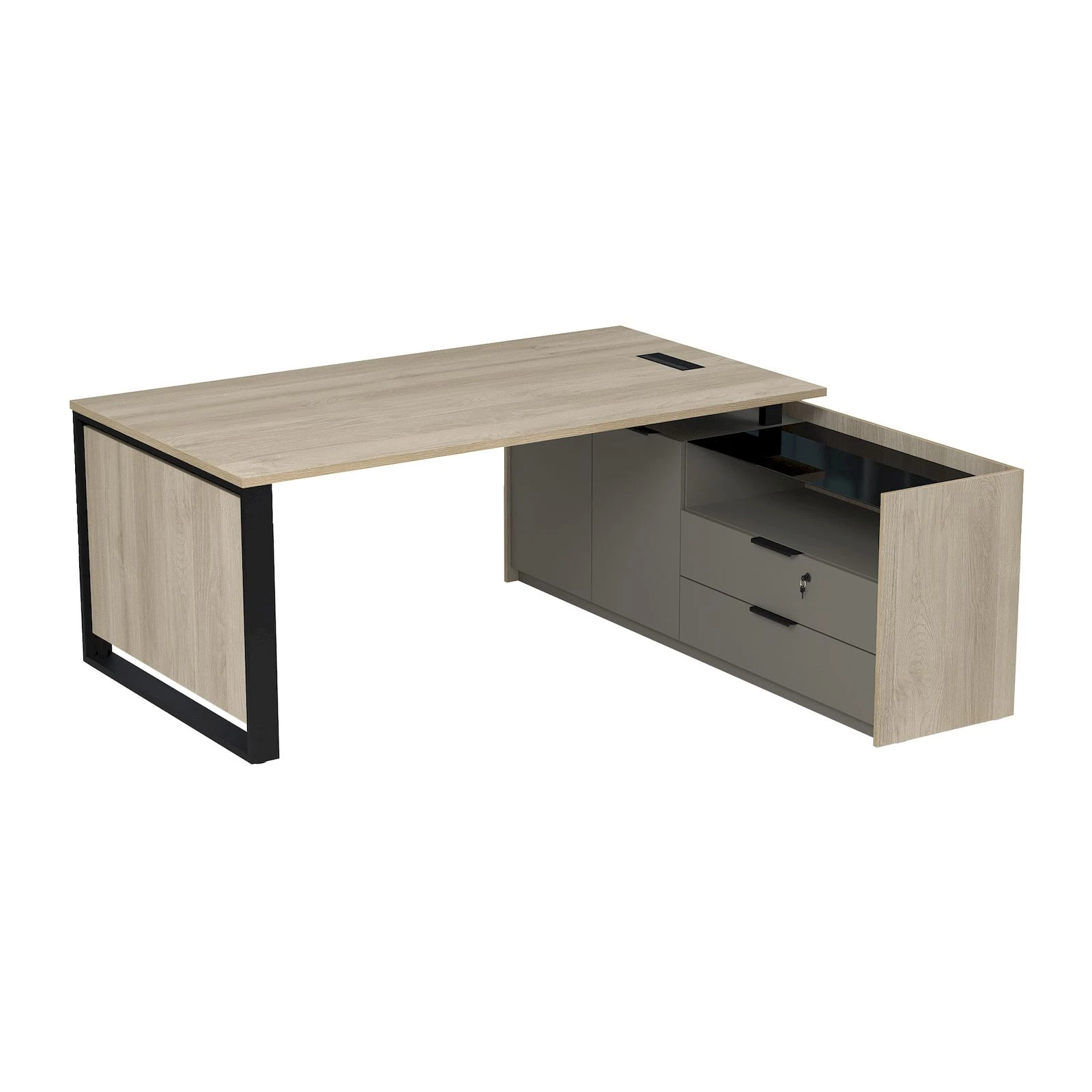 Стол рабочий с лючком, на опорной двусоставной тумбе (1860x1768x750) МАГНЕТИК / MAGNETIC