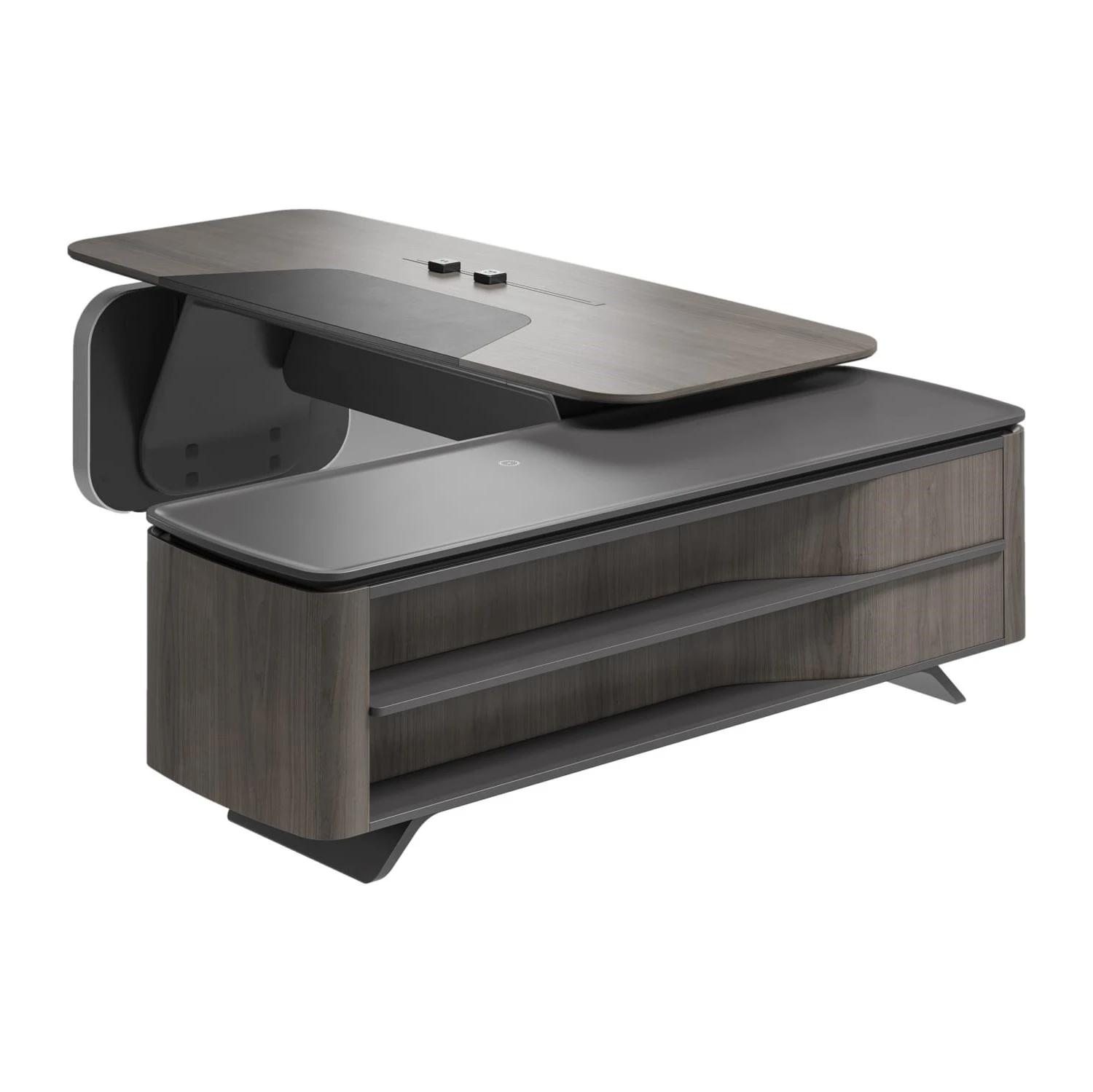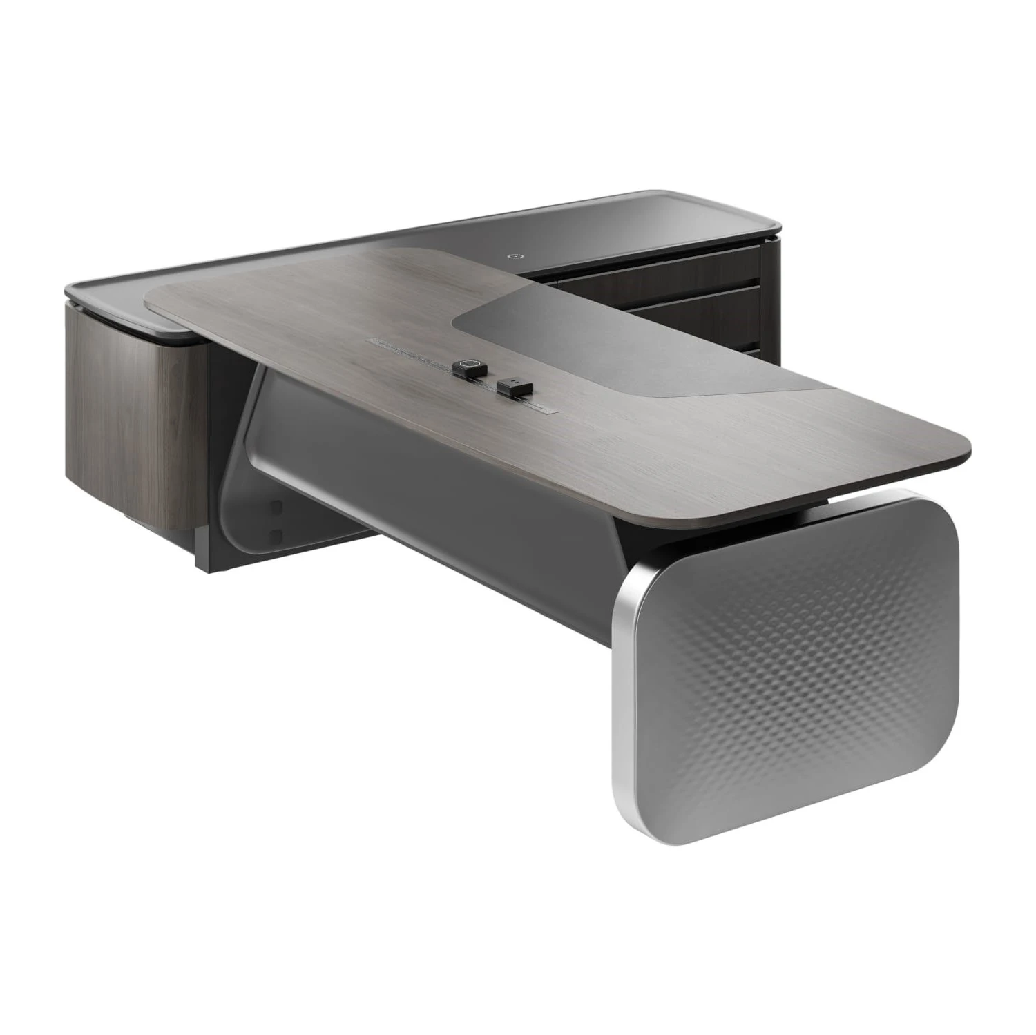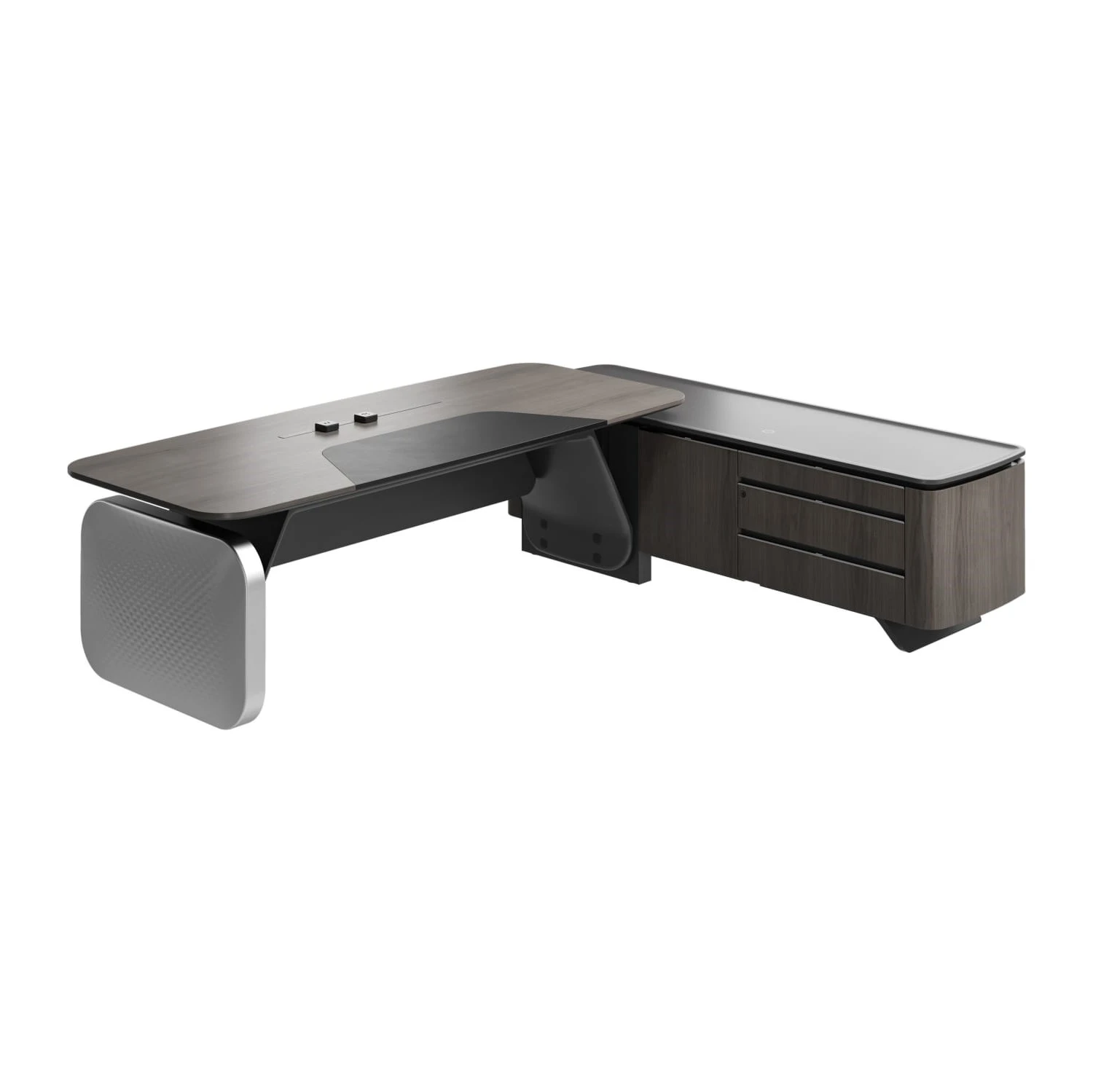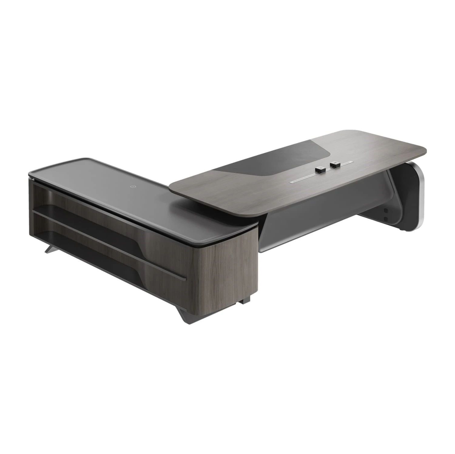 Стол руководителя на опорной сервисной тумбе - правый 2480x2240x750-1150 Atlas (Sun)