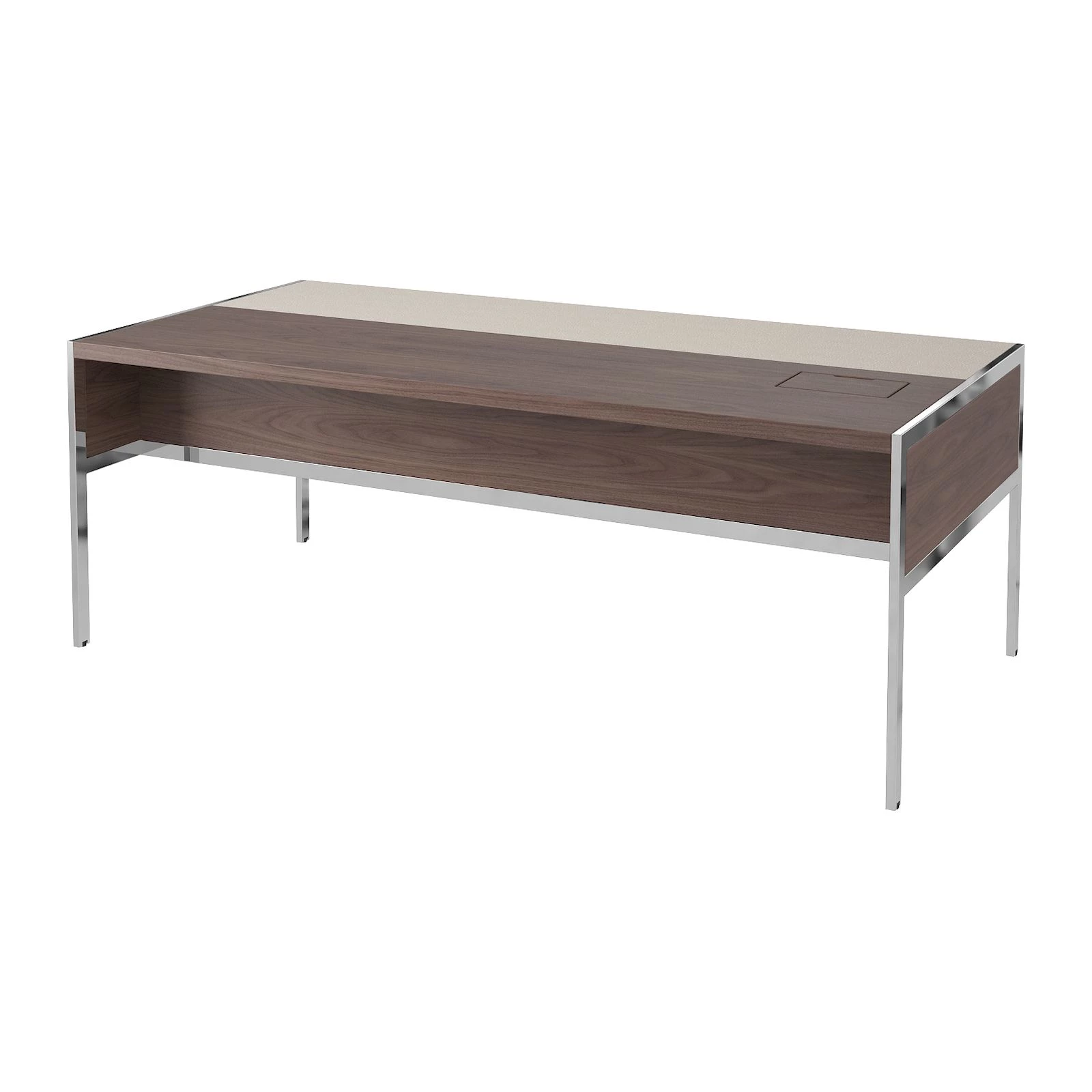 Стол руководителя с лючком слева, матовый, хром. опоры, кожа 1840х1000х750 Gallery