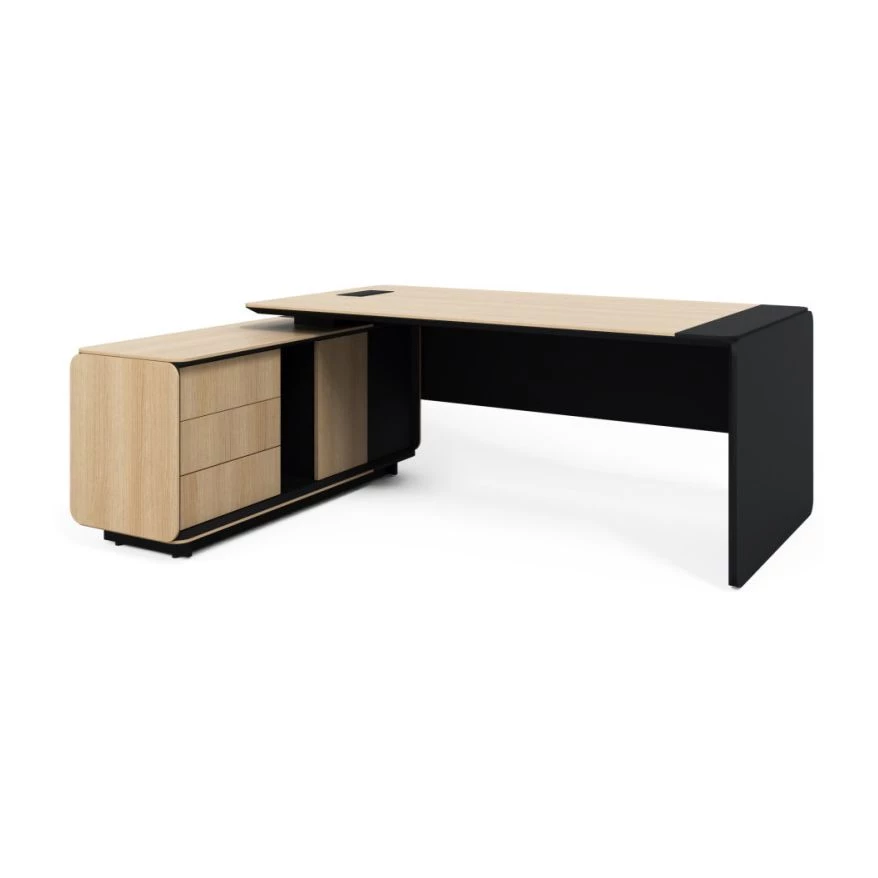 Стол руководителя с тумбой L 203х162х75,2 Gio Дуб парма/Черный