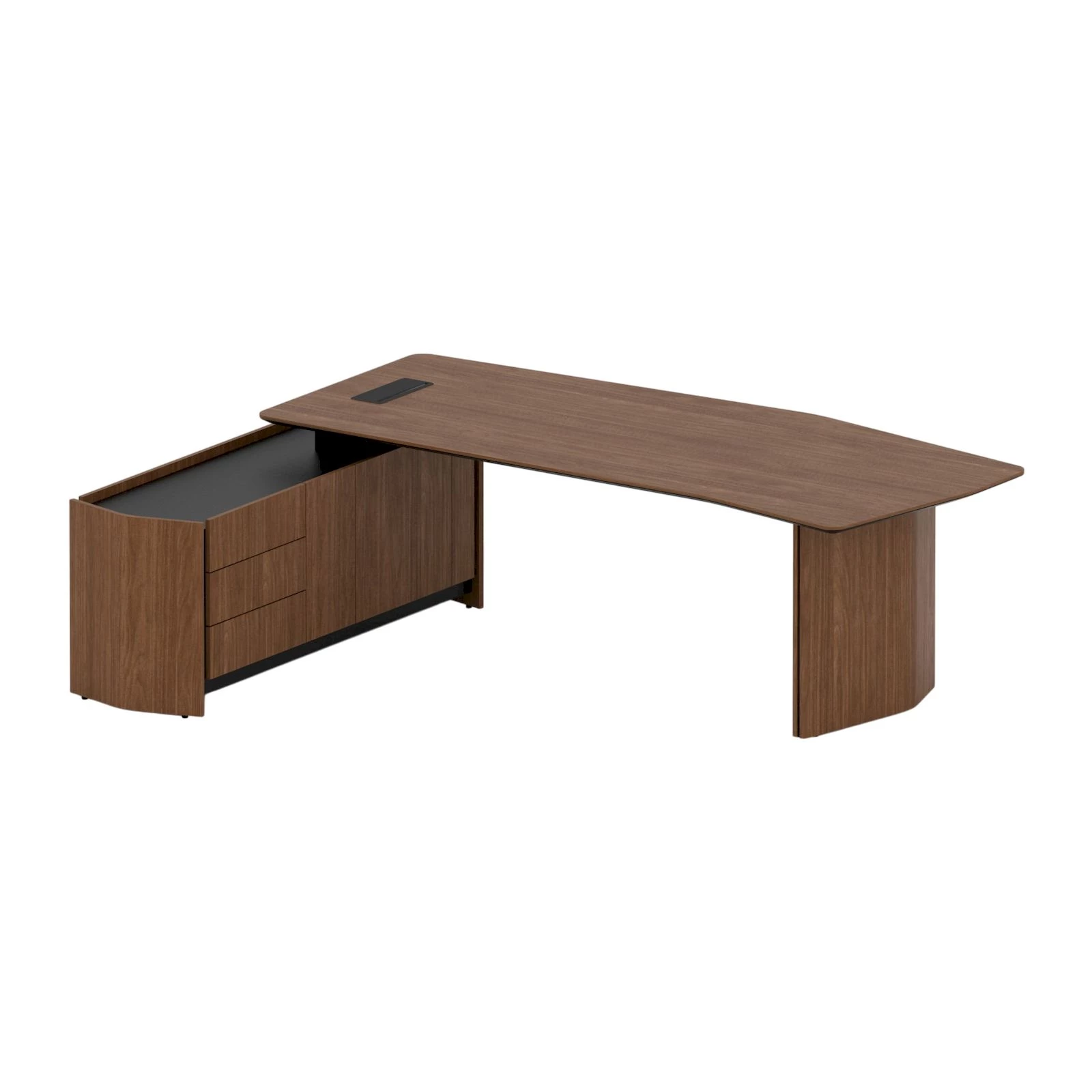 Стол руководителя с тумбой левый, лючок, 247,6х184,2х74,4 Reflex Орех/Черный