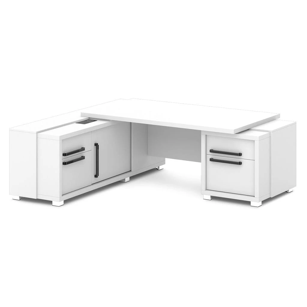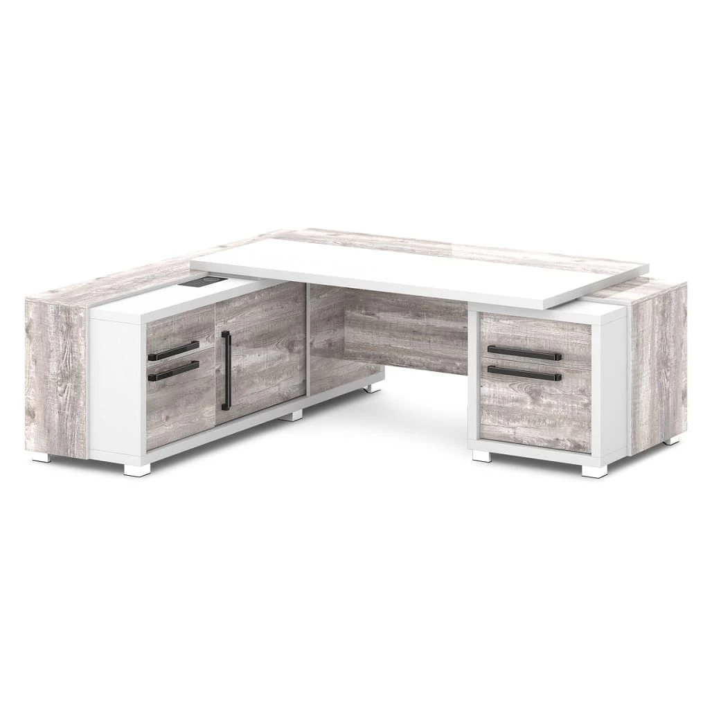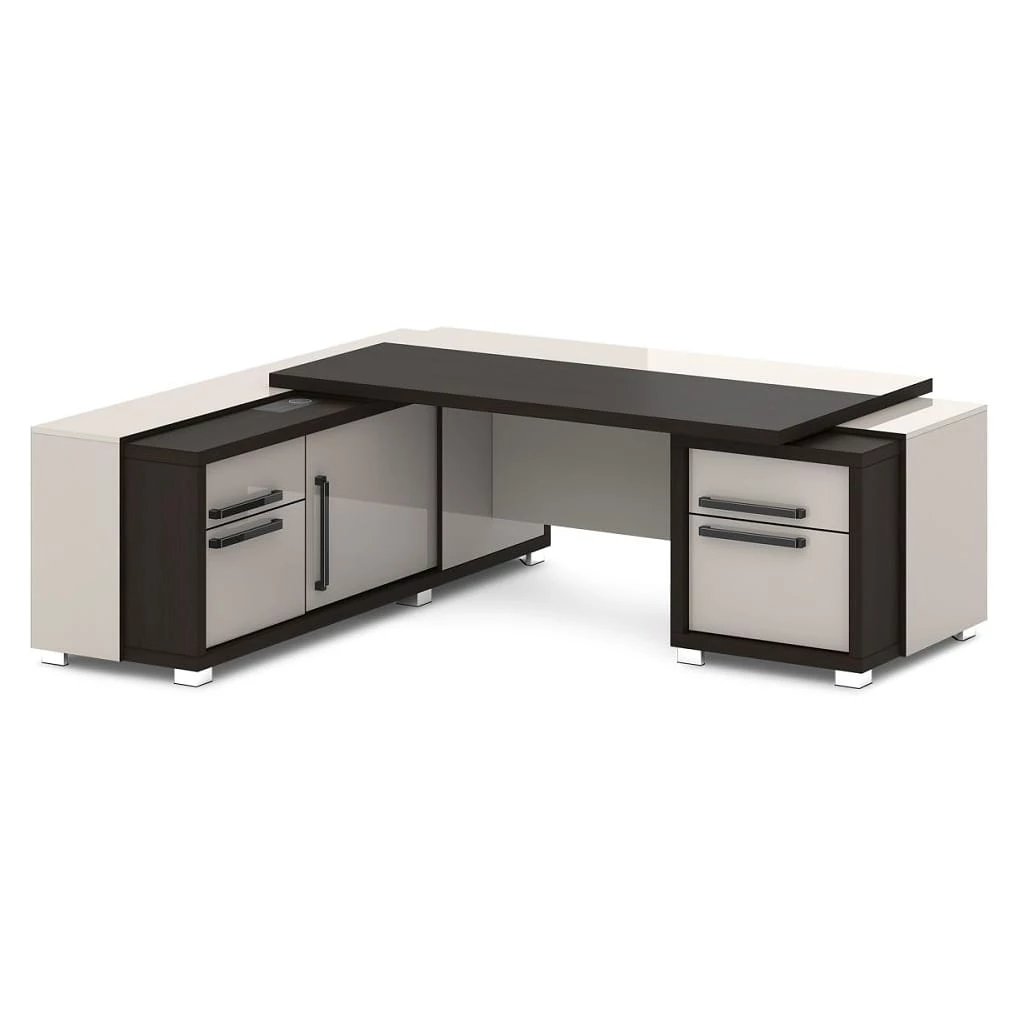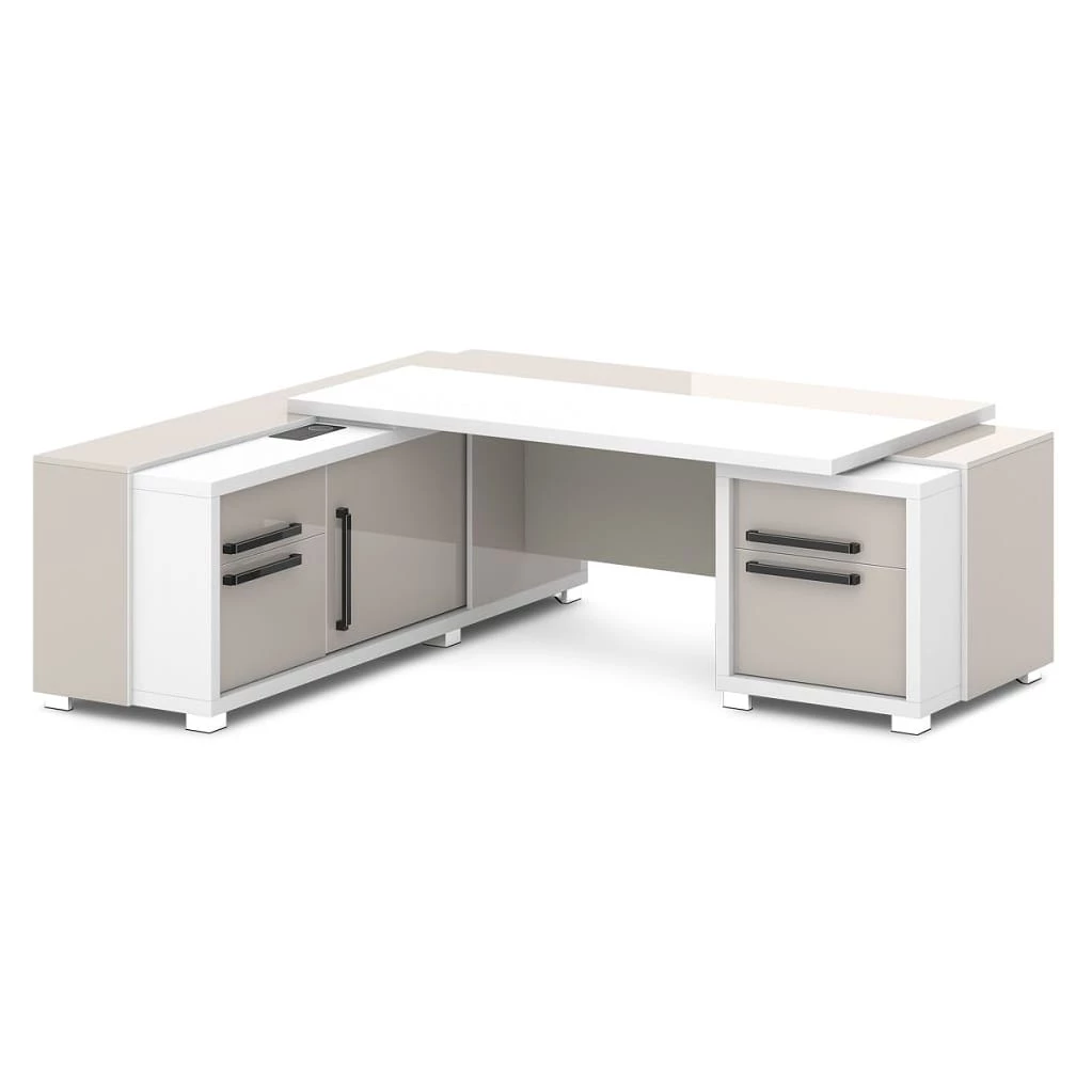 Стол с тумбой и греденцией (беспроводная зарядка, 2xUSB, розетка) 2270х2016х750 Grace