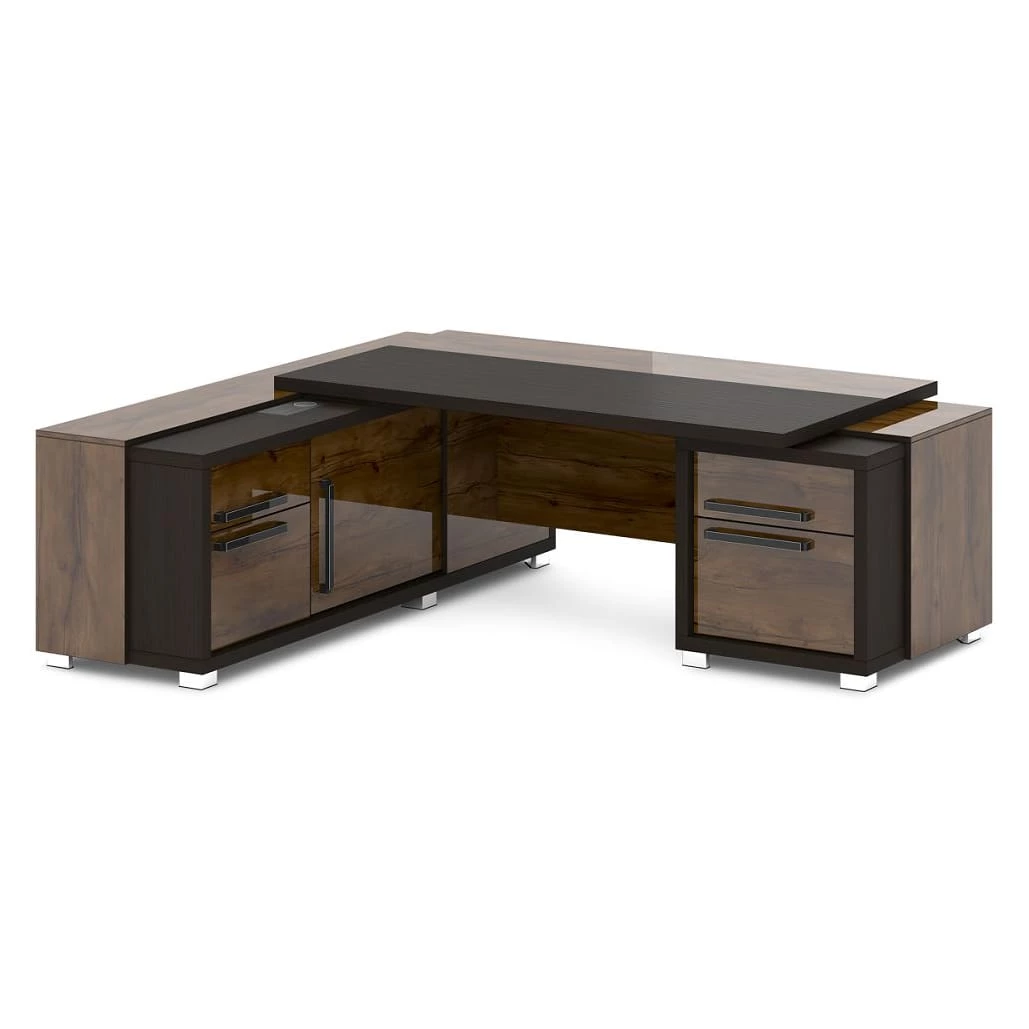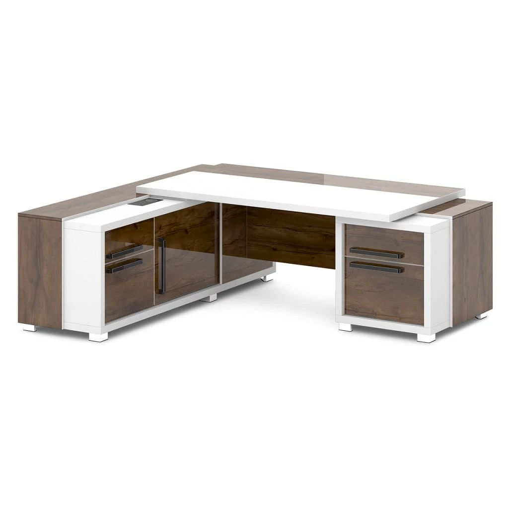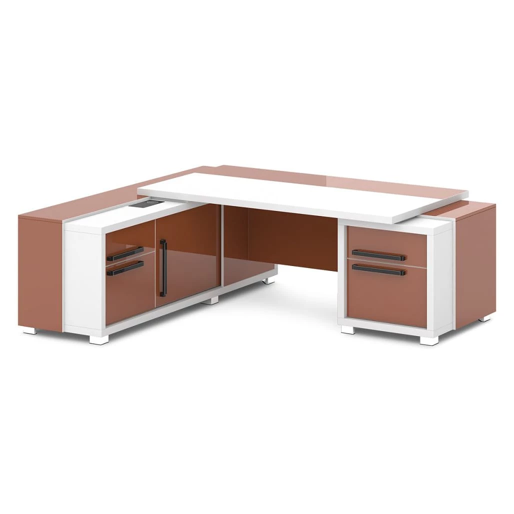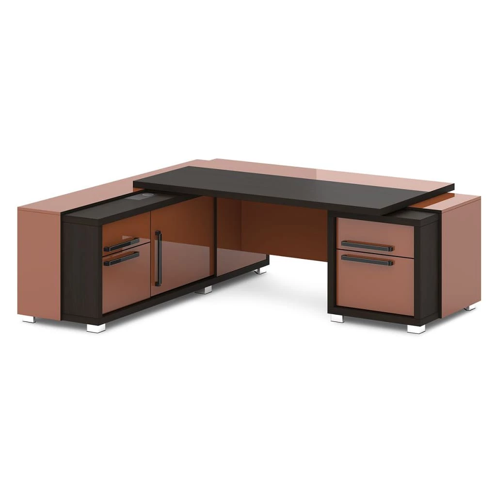 Стол с тумбой и греденцией (беспроводная зарядка, 2xUSB, розетка) 2270х2016х750 Grace