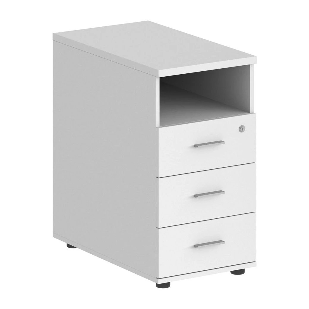 Тумба приставная 400x700x725 с 3 ящиками (метаб) и нишей, с замком Sigma Белый